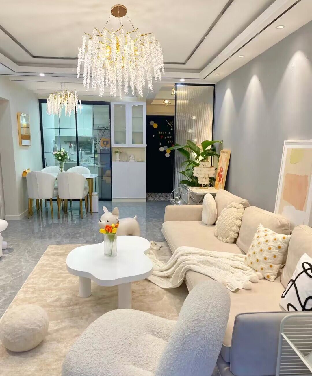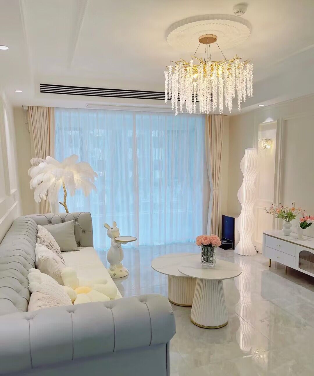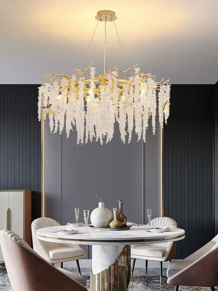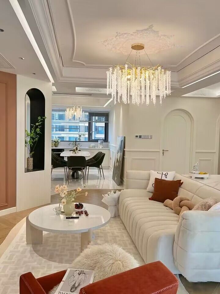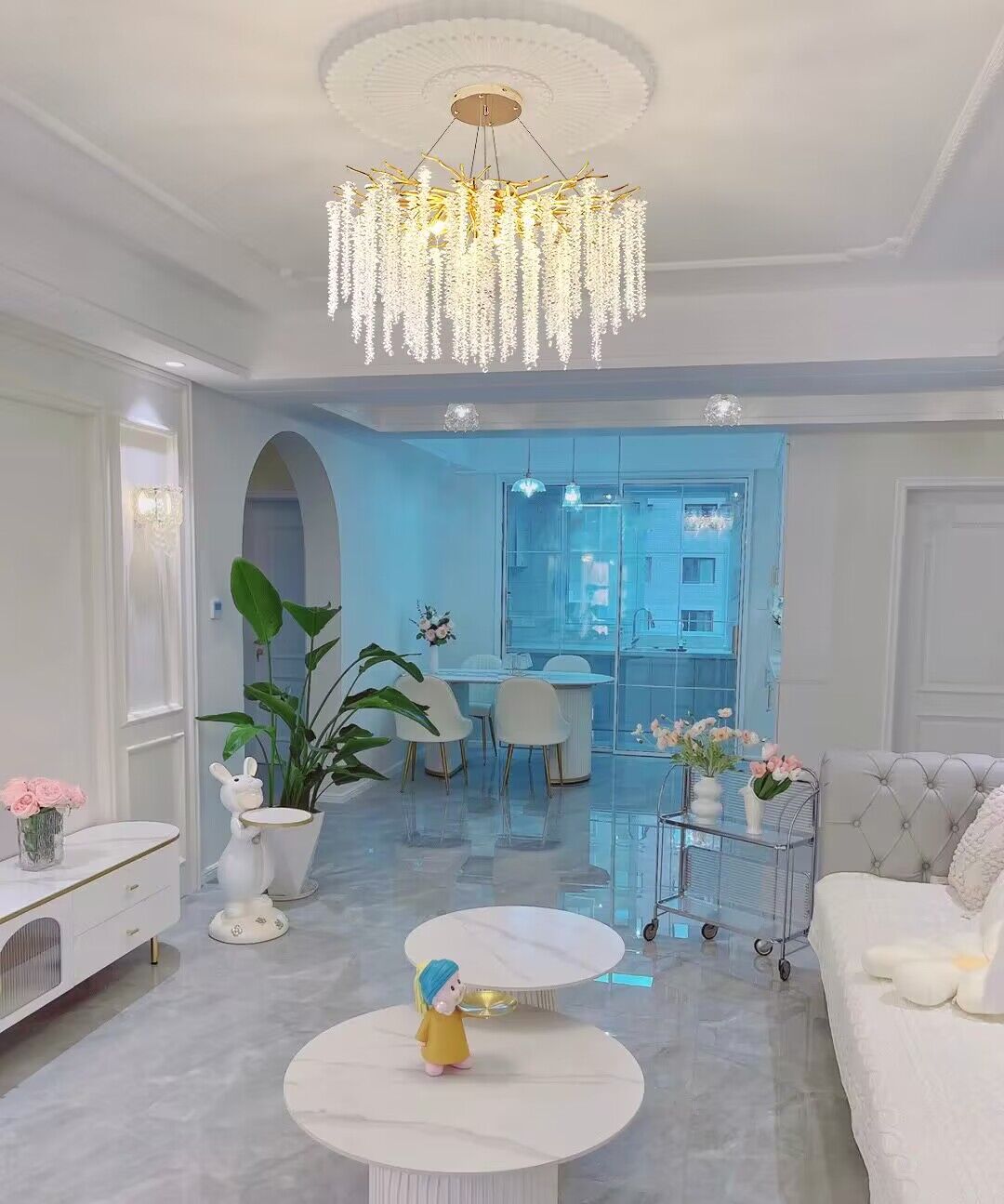 This chandelier has a French romance vibe. It has different shapes, suitable for different interior styles and places such as living rooms, bedrooms, cafes, restaurants, etc.