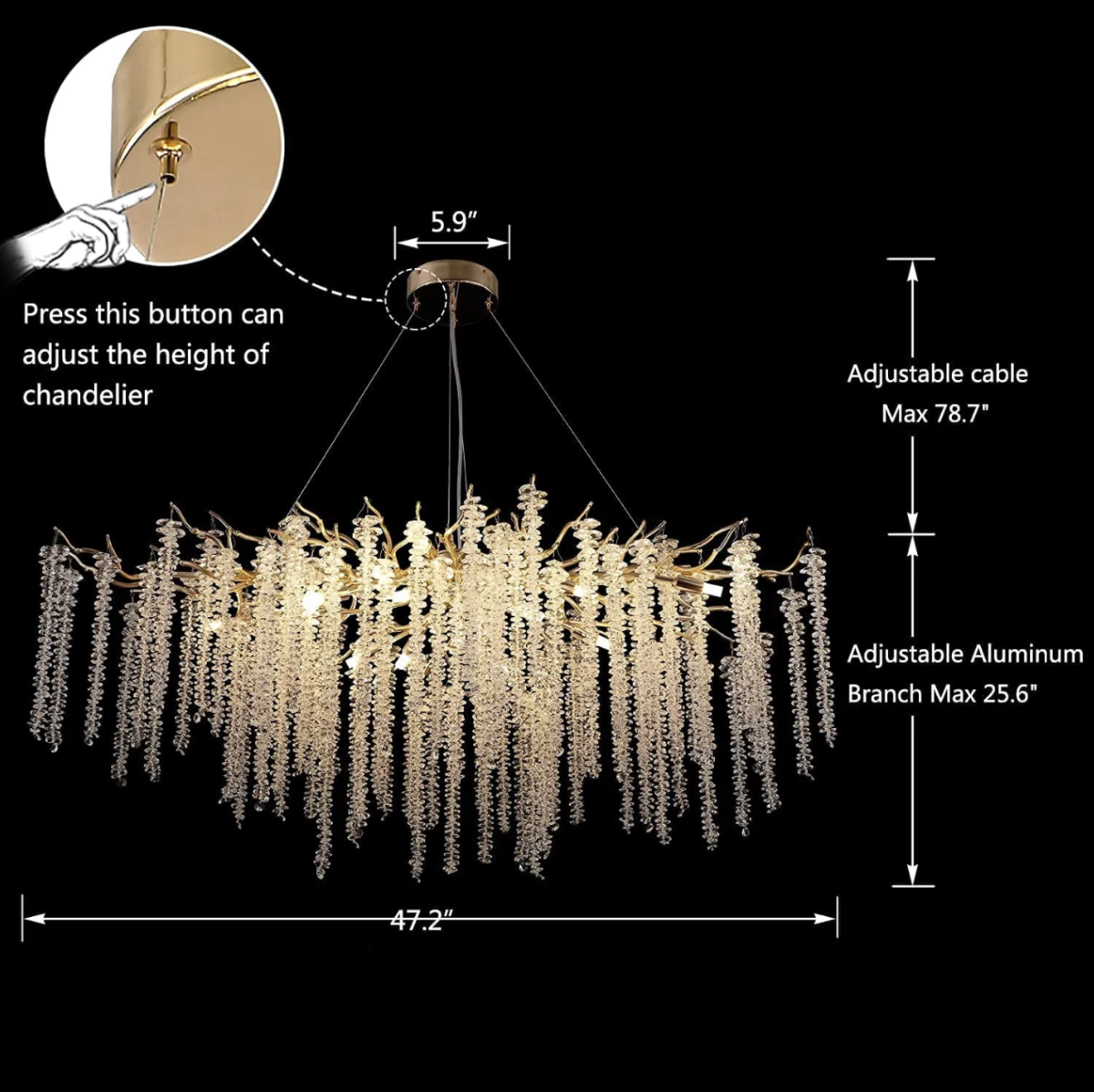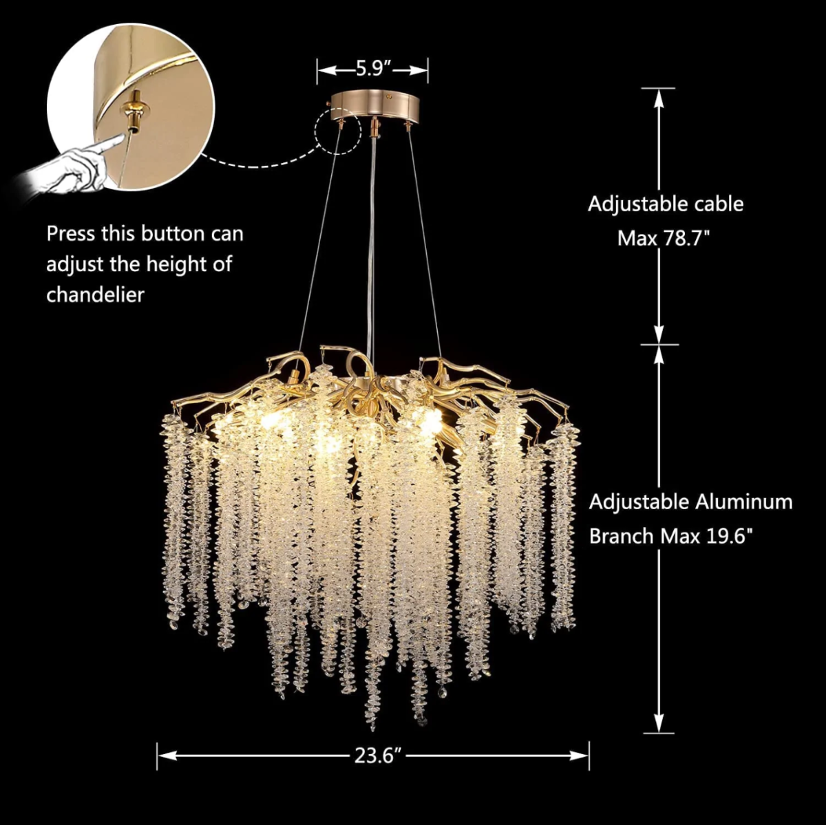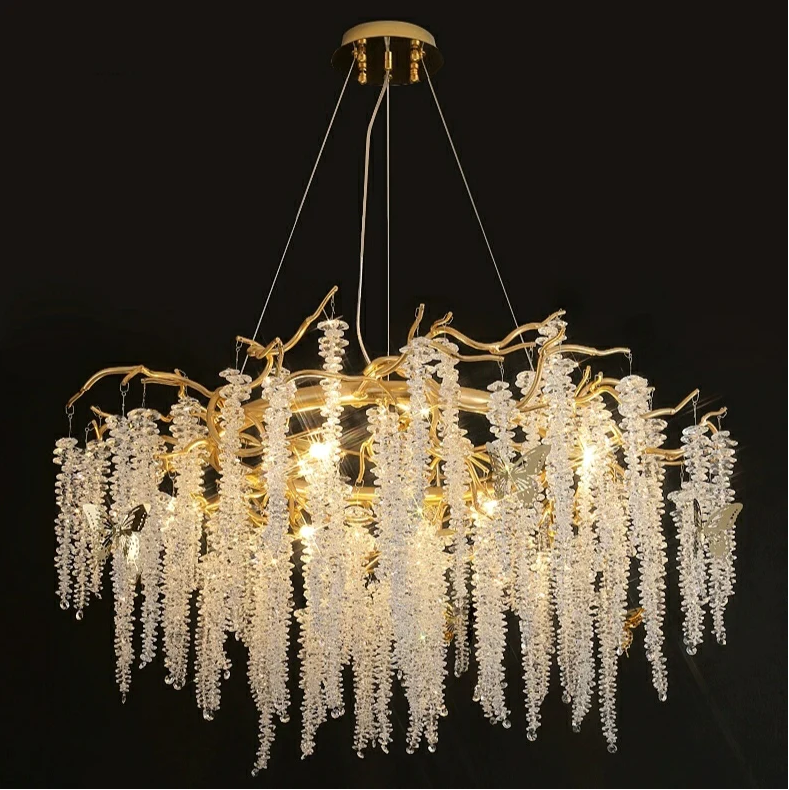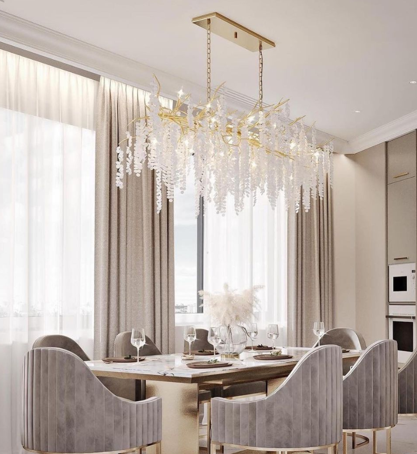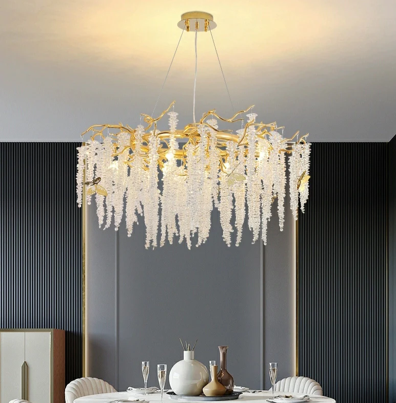 This chandelier has a French romance vibe. It has different shapes, suitable for different interior styles and places such as living rooms, bedrooms, cafes, restaurants, etc.