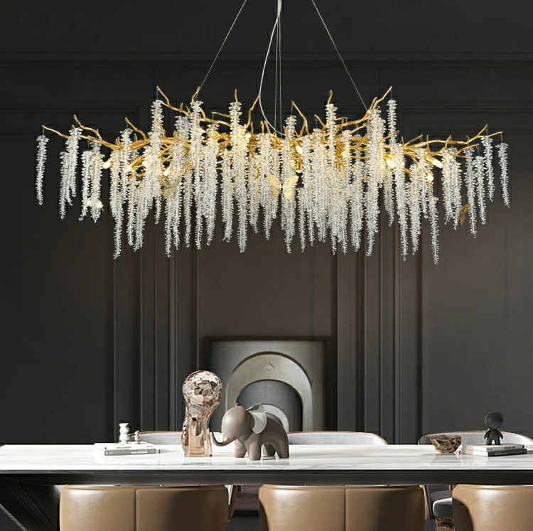 European Light Luxury Dining Table Crystal Chandelier Designer Modern Living Room Light Fixture