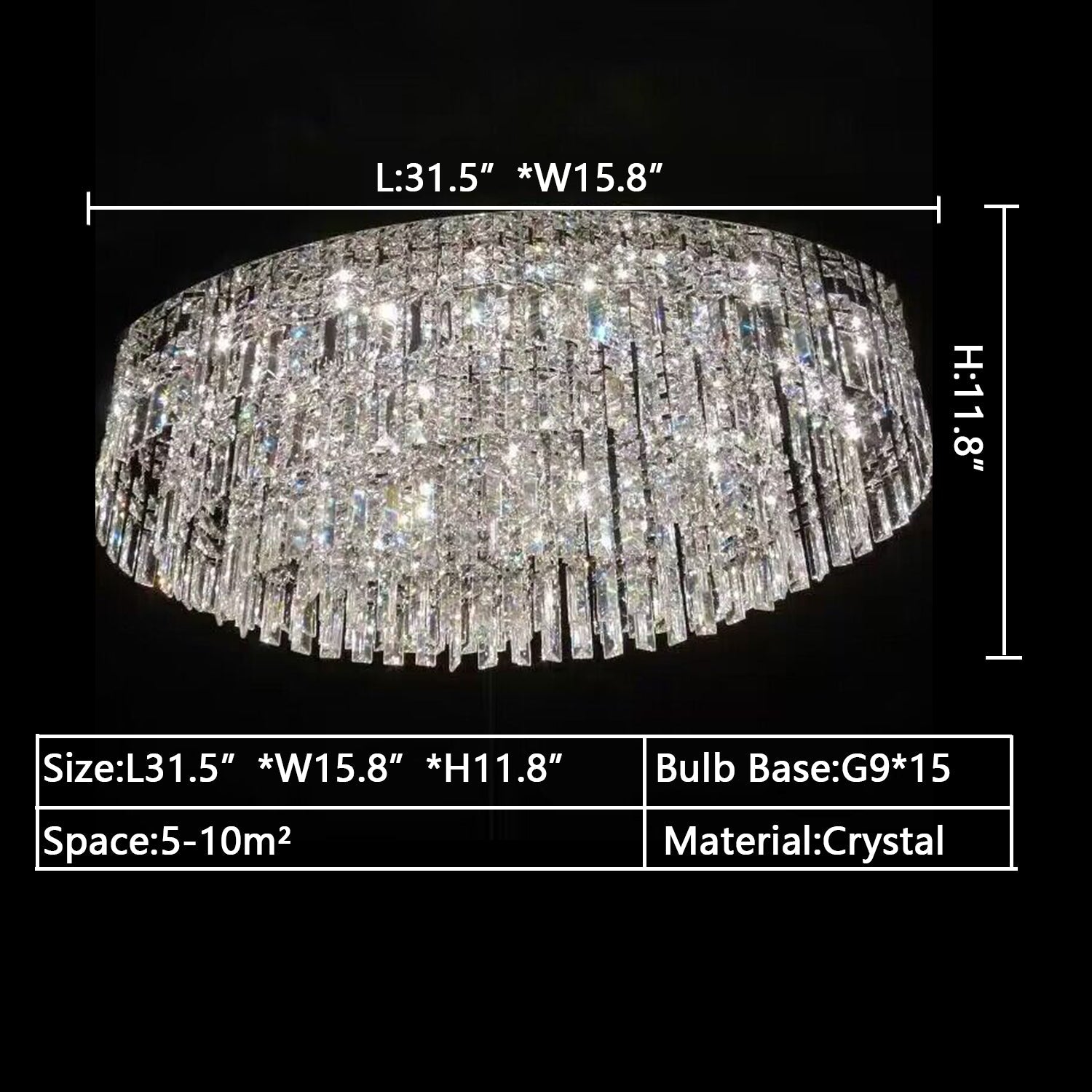 Extra Large Flush Mount Crystal Chandelier Oval/Round Modern Luxury Light Fixture For Living Room/Dining Room/Bedroom