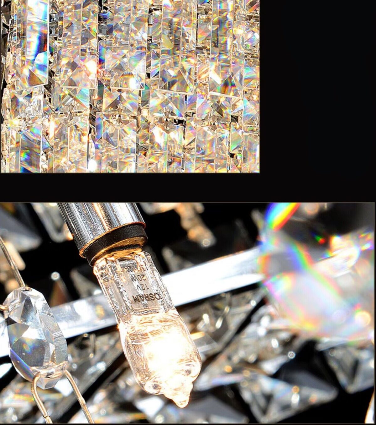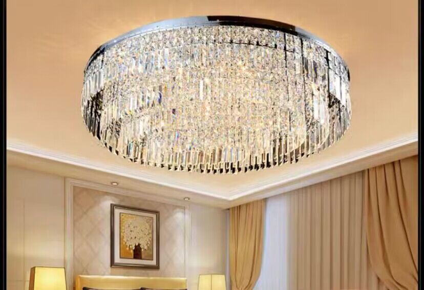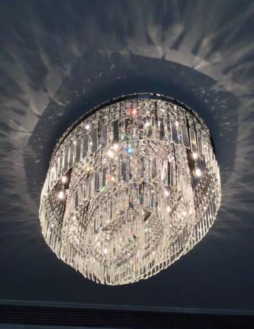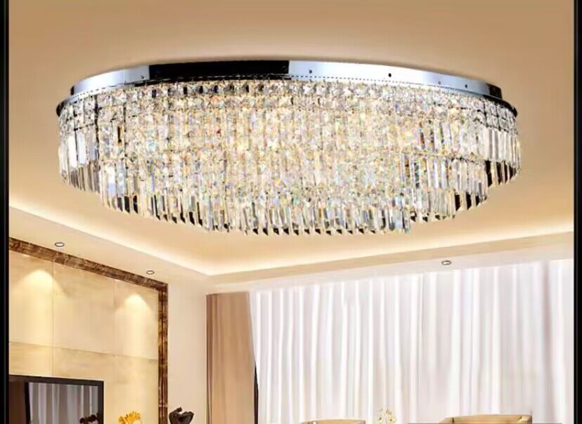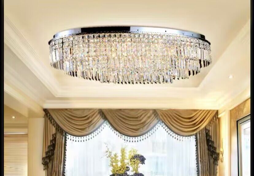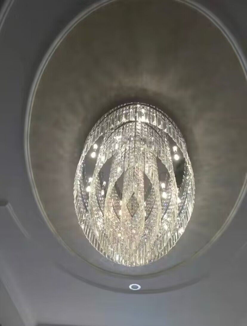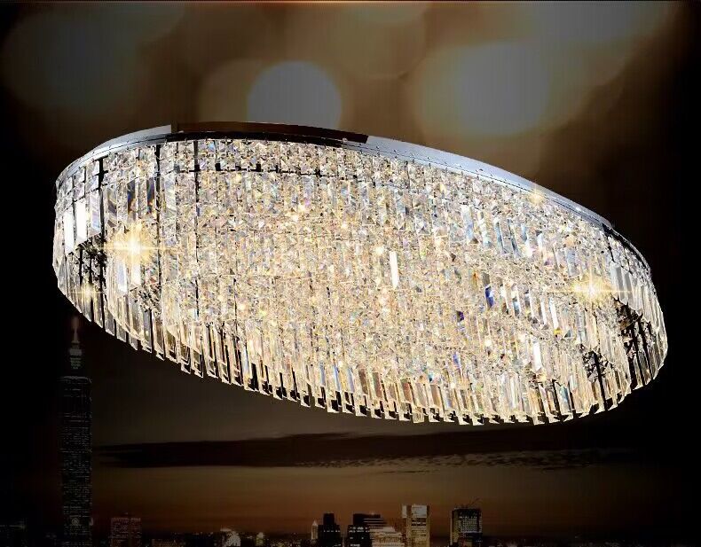 This oval /round ceiling crystal chandelier is made of high-quality crystal,square crystals arranged in layers to form elegant crystal curtains, universal for both high and low storey household types, different sizes to suit different home decoration needs.