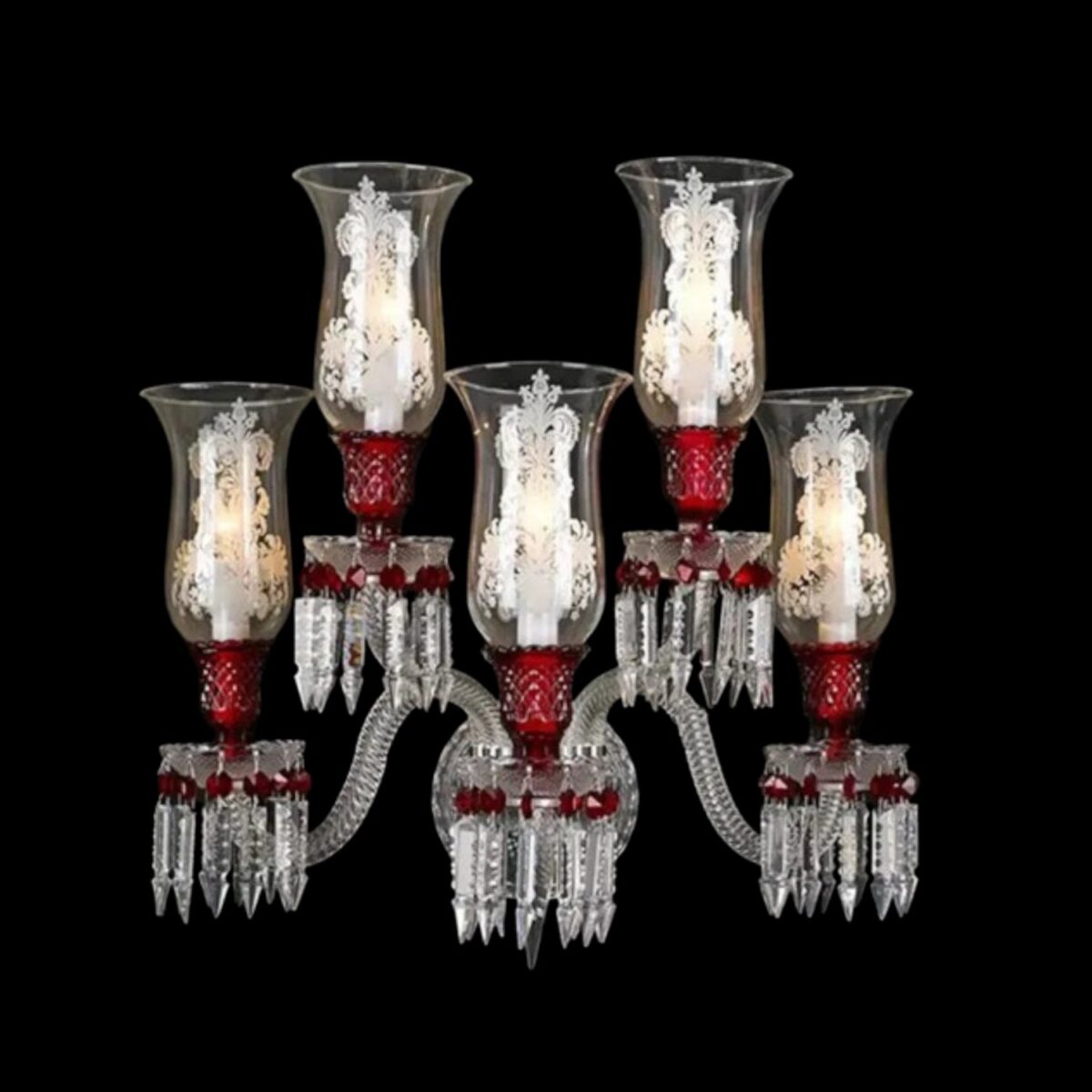 Luxury Classic 5-Arm Red Crystal Candle Wall Light