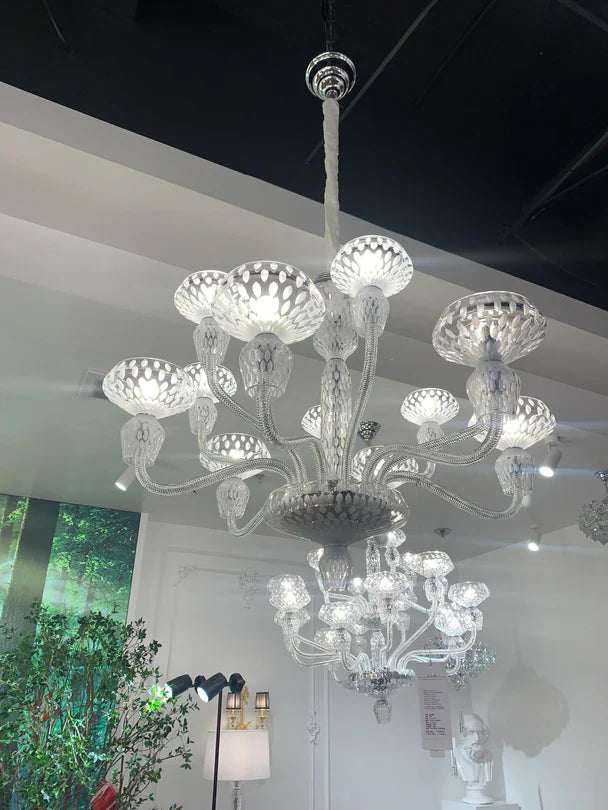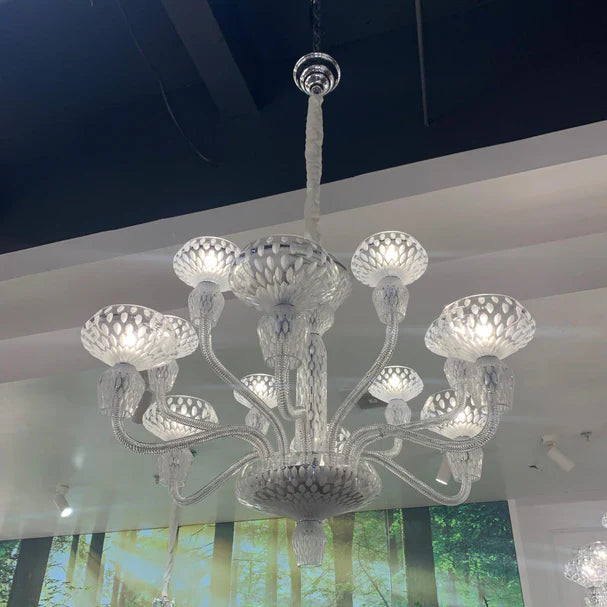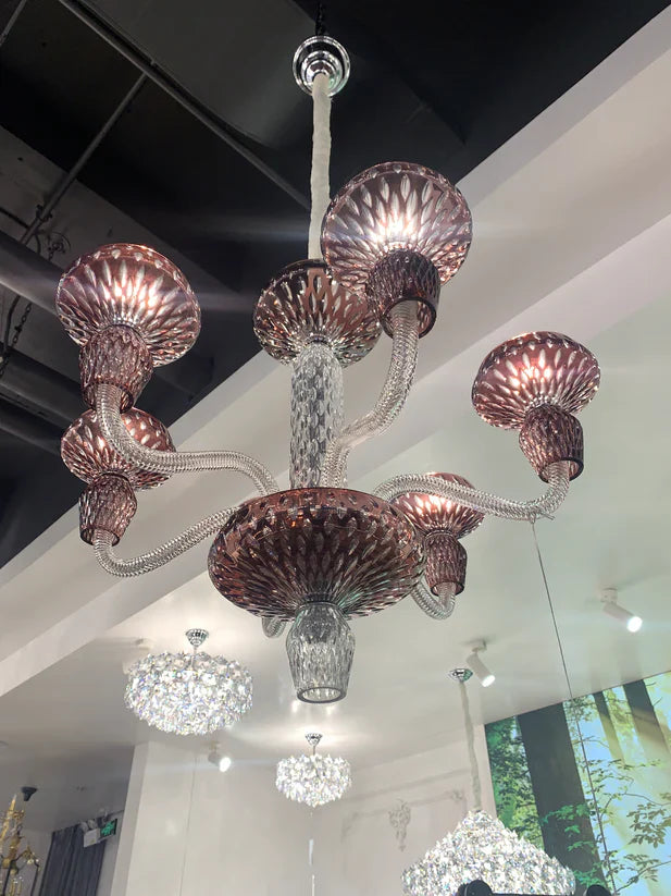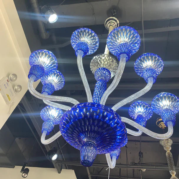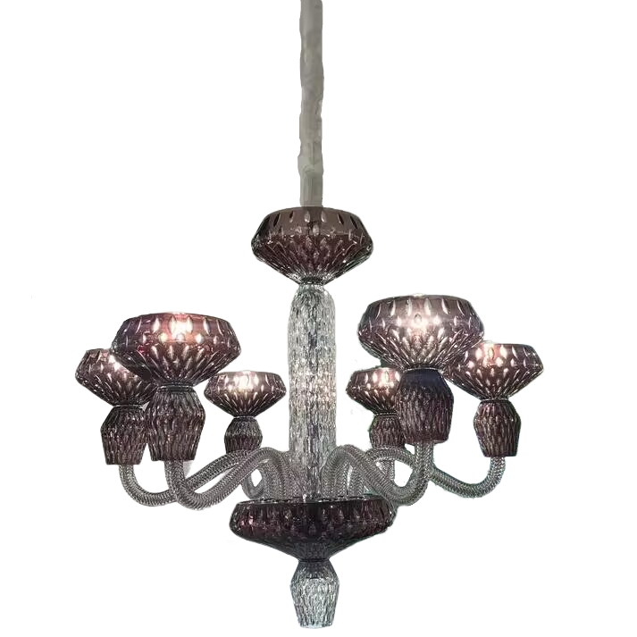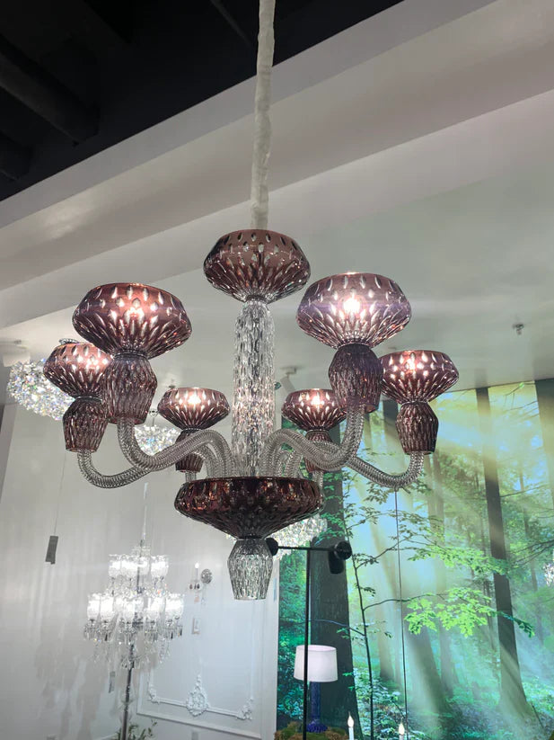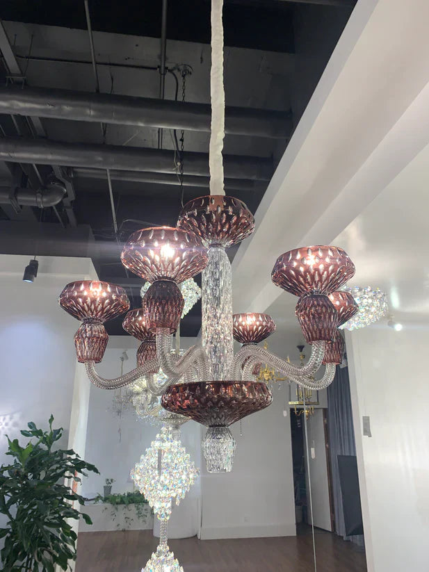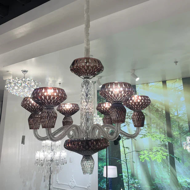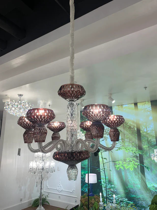 Luxury Hand-engraved Clear/Blue/Prune Crystals Chandelier