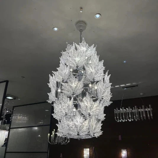 Illuminate any space with this Modern Creative Crystal Maple Leaf Chandelier. The unique design adds a touch of elegance and a contemporary flair to any living room, bedroom, or dining room. Handcrafted with high-quality materials, this chandelier is sure to impress and become a statement piece in your home.