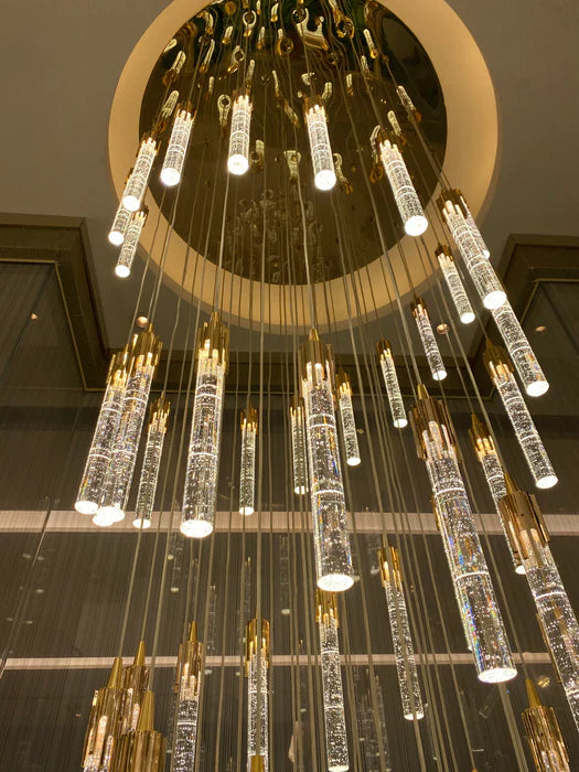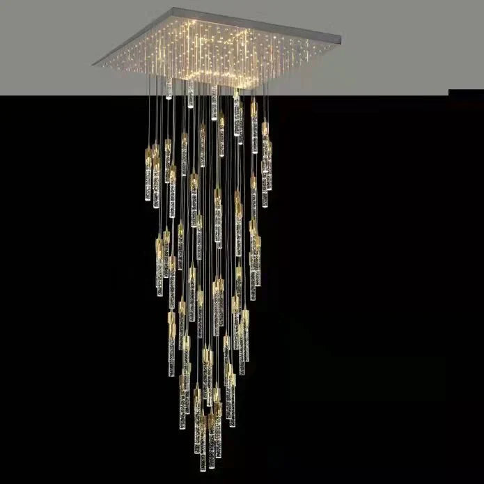 Elevate your space with our Modern Floating Spiral Crystal Bubble Chandelier. Designed with innovative creativity, this chandelier adds a touch of sophistication to high-ceiling areas. The sleek spiral design paired with sparkling crystal bubbles gives a unique and modern touch to any room. Upgrade your space with this statement piece.