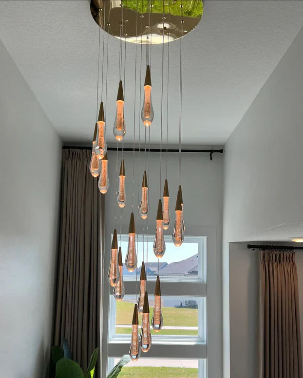Modern Golden Suspension RaindropSpiral Crystal Chandelier for High-ceiling