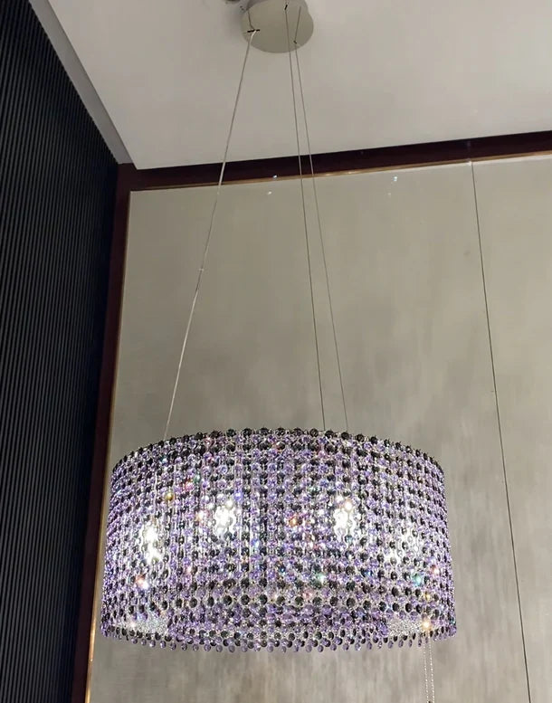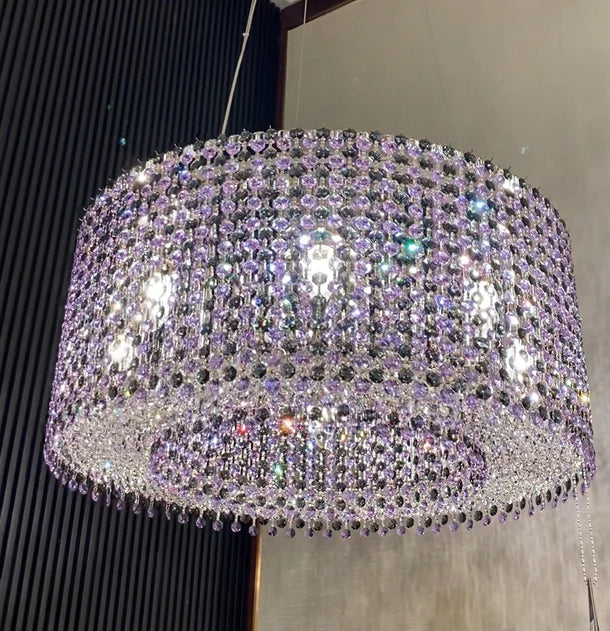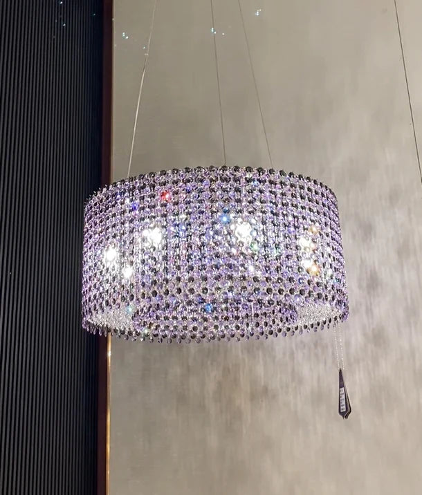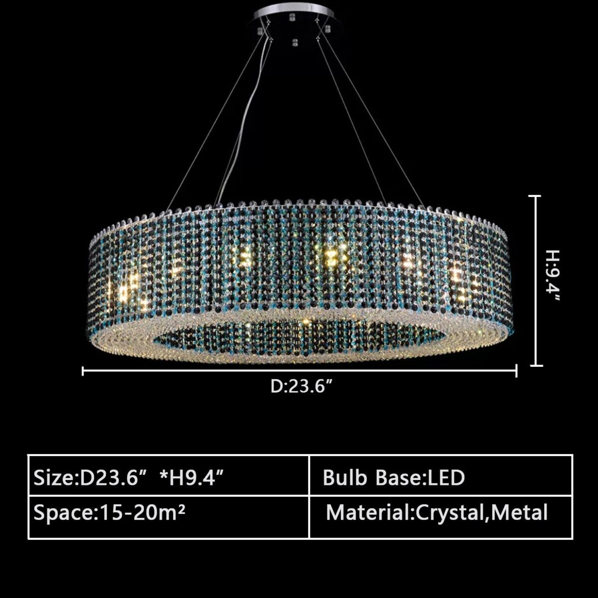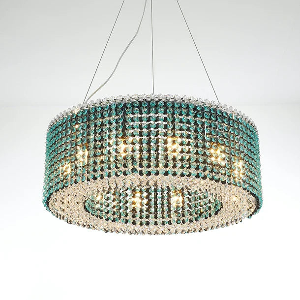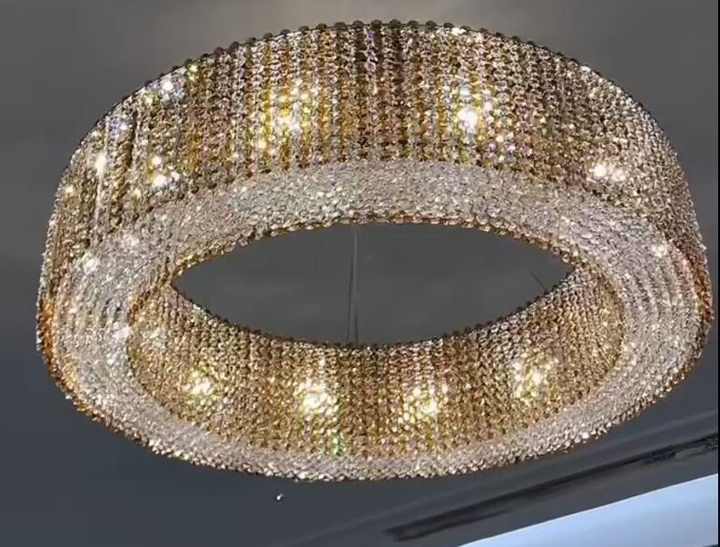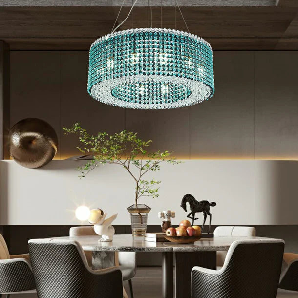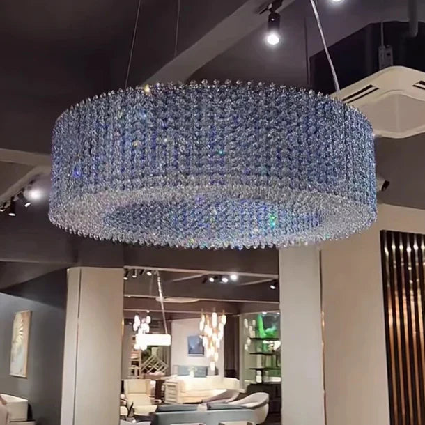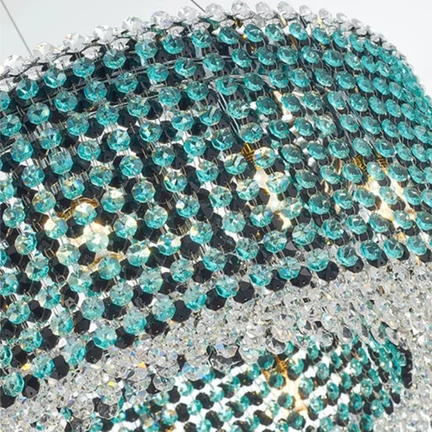This round light luxury crystal chandelier symbolizes completeness. With blue or gold crystals neatly arranged to form a graceful circle of light, this chandelier creates a premium and sophisticated atmosphere whether it is decorated in the living room or dining room.