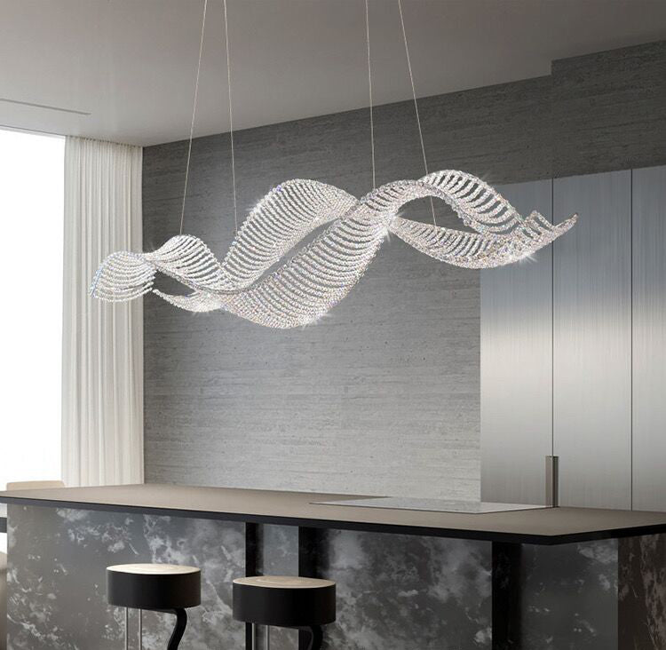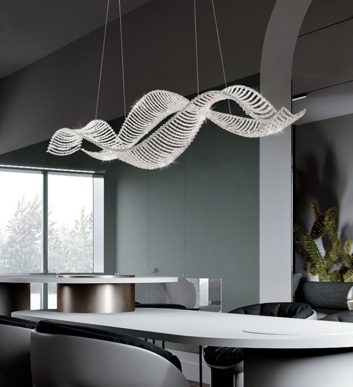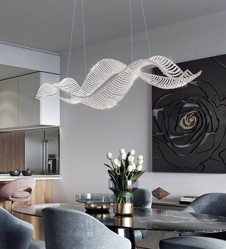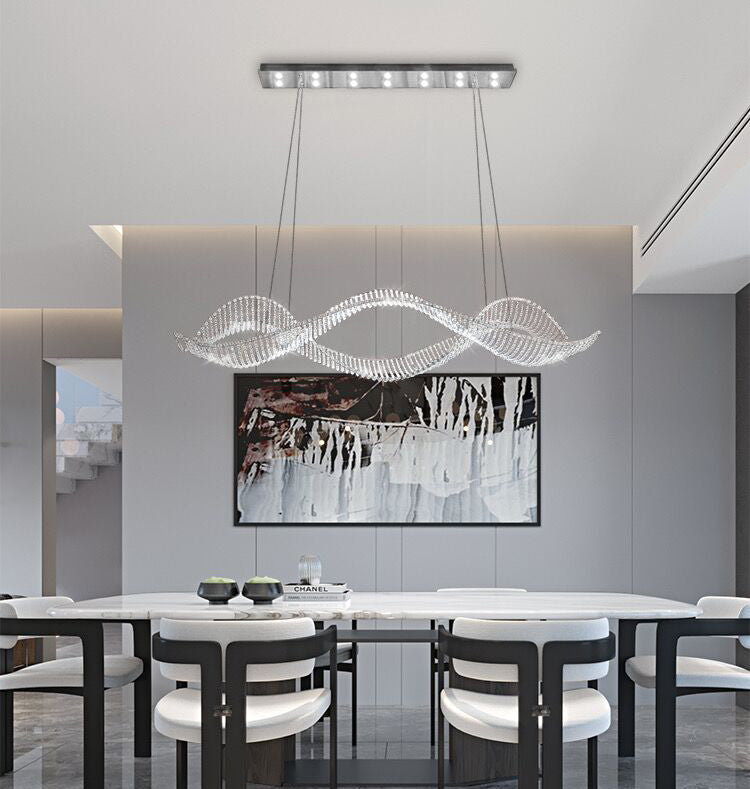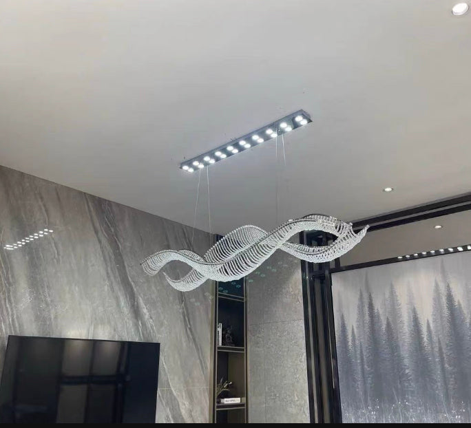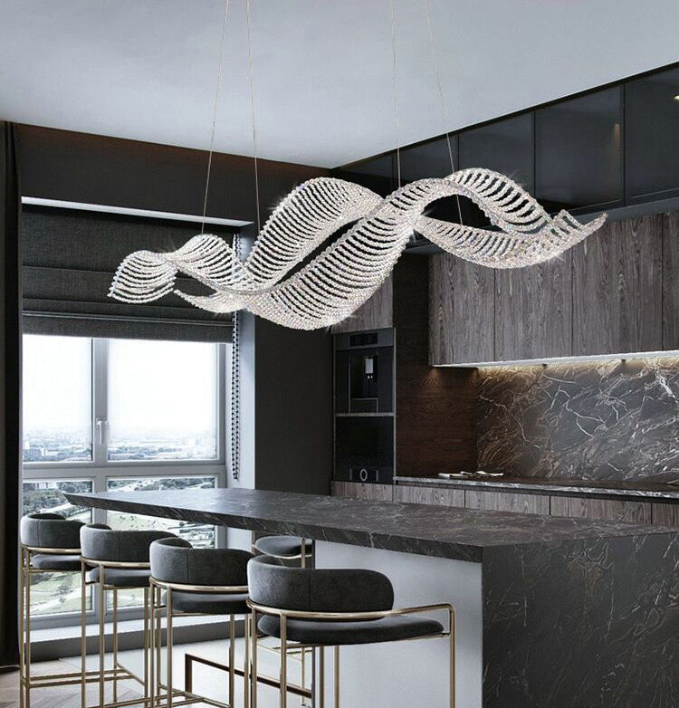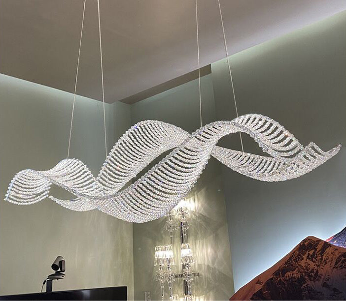 Bring luxurious style to your space with the Wave Embedded Crystal Chandelier. Uniquely designed to resemble graceful waves, this lightweight chandelier is expertly embedded with shimmering crystals that reflect and refract light, creating a captivating effect with any type of lighting. Ideal for adding a touch of glamour and sophistication to your entryway, dining room, or ballroom, this stunning centerpiece will draw attention all around. Whether looking to dress up your traditional home décor or make a modern statement, the Wave Embedded Crystal Chandelier is sure to make an unforgettable impression. With easy to follow chandelier cleaning and light fixture installation instructions included, it’s the perfect choice for adding a touch of sparkle to your home.