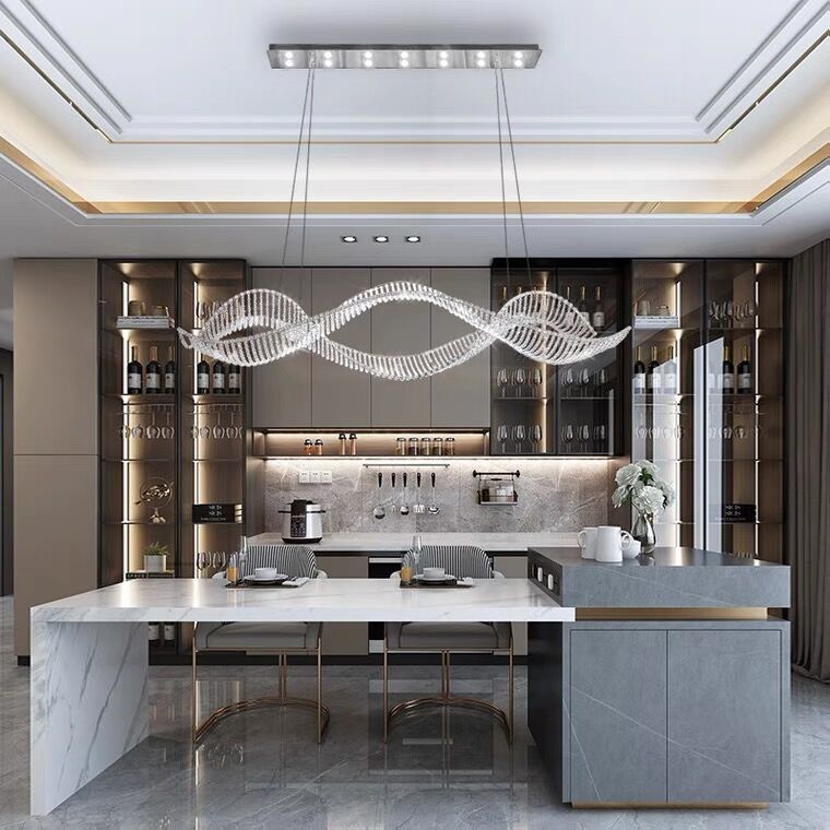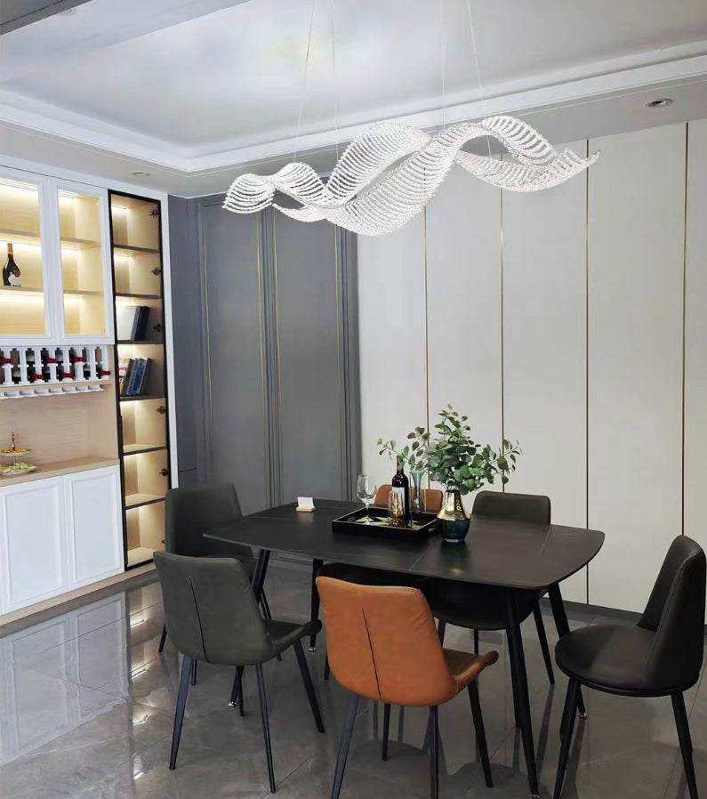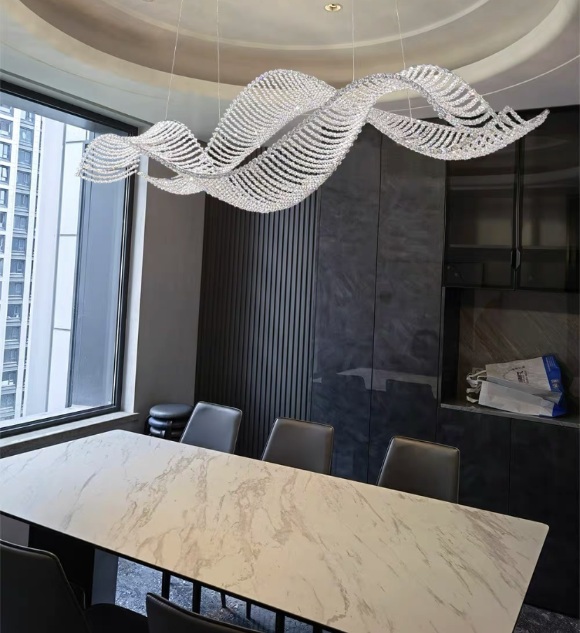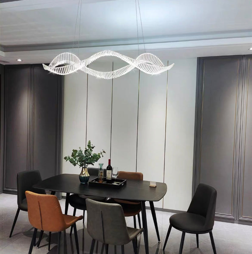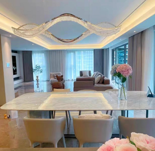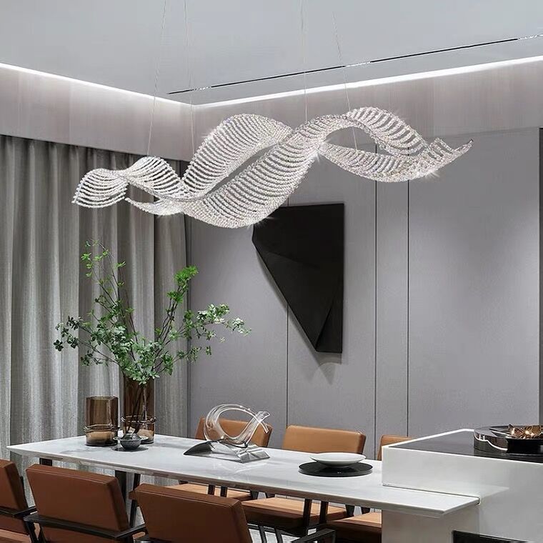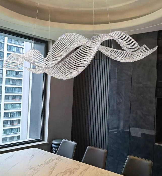 Bring luxurious style to your space with the Wave Embedded Crystal Chandelier. Uniquely designed to resemble graceful waves, this lightweight chandelier is expertly embedded with shimmering crystals that reflect and refract light, creating a captivating effect with any type of lighting. Ideal for adding a touch of glamour and sophistication to your entryway, dining room, or ballroom, this stunning centerpiece will draw attention all around. Whether looking to dress up your traditional home décor or make a modern statement, the Wave Embedded Crystal Chandelier is sure to make an unforgettable impression. With easy to follow chandelier cleaning and light fixture installation instructions included, it’s the perfect choice for adding a touch of sparkle to your home.