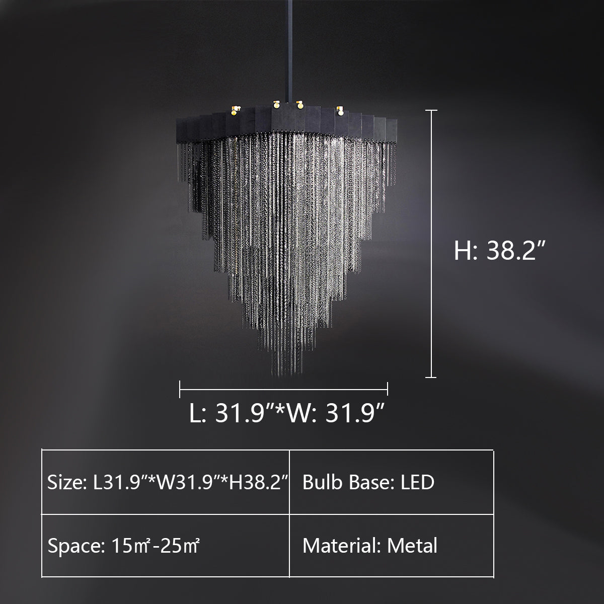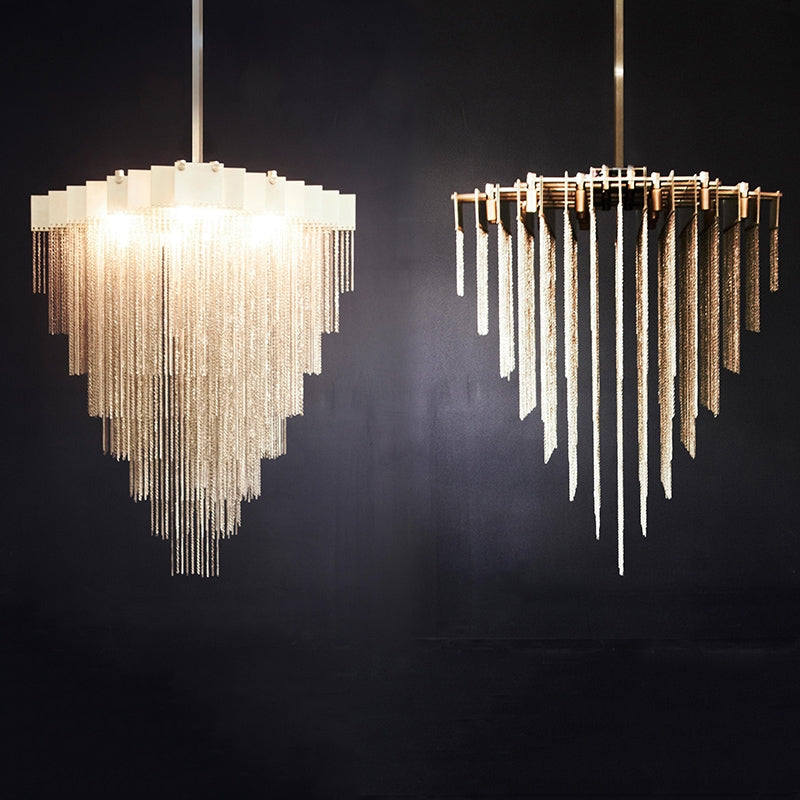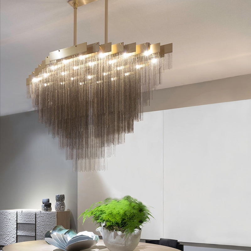 This tasseled aluminum chain chandelier. Creative and stylish, made of space aluminum, anti-corrosion and anti-rust, wave-shaped layers overlapping highlight the feeling of luxury, whether used in the living room or dining room can strongly attract the eye
