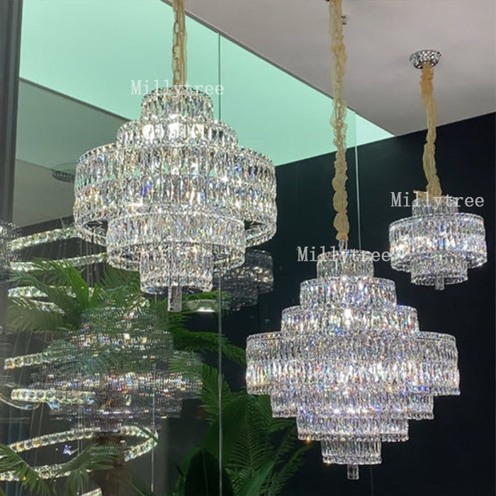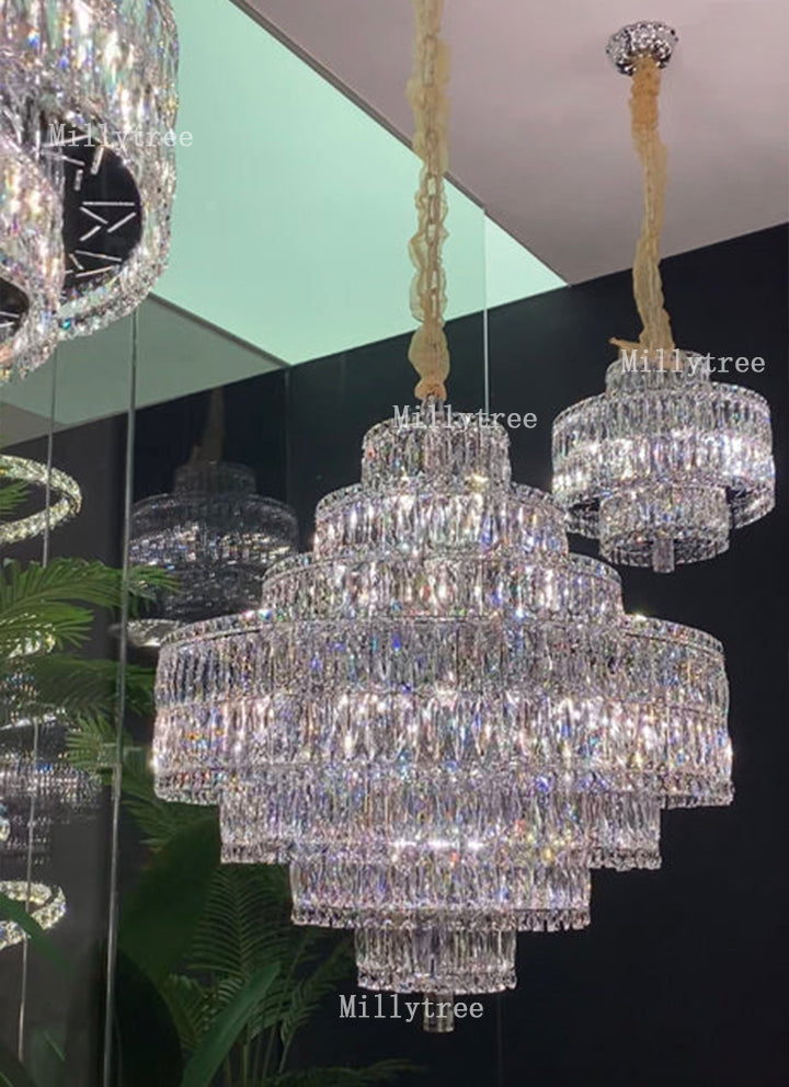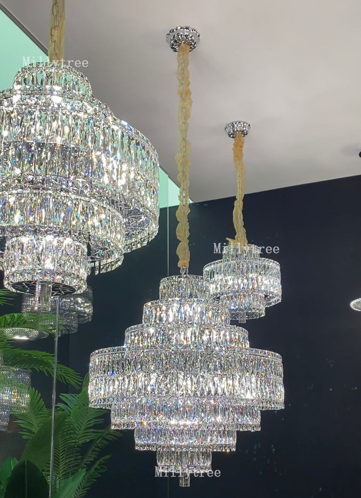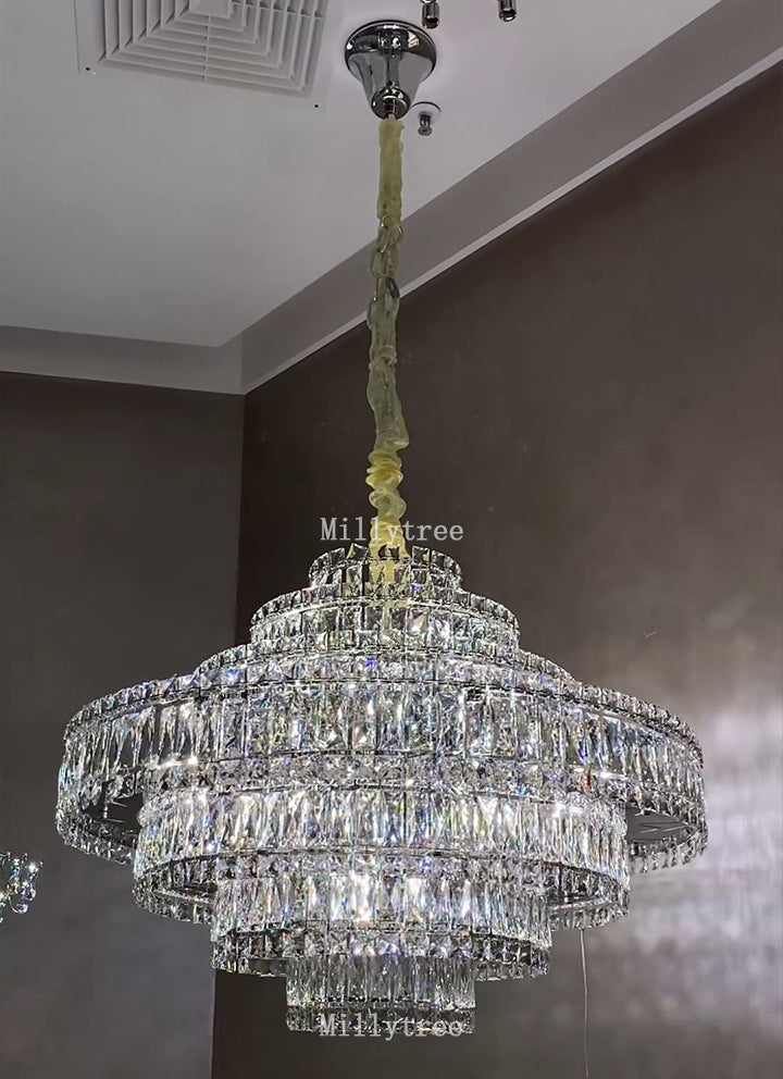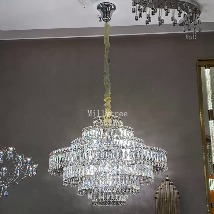 Modern Light Luxury Multi-layers Silver Round Crystal Chandelier for Living Room/Dining Room/Bedroom