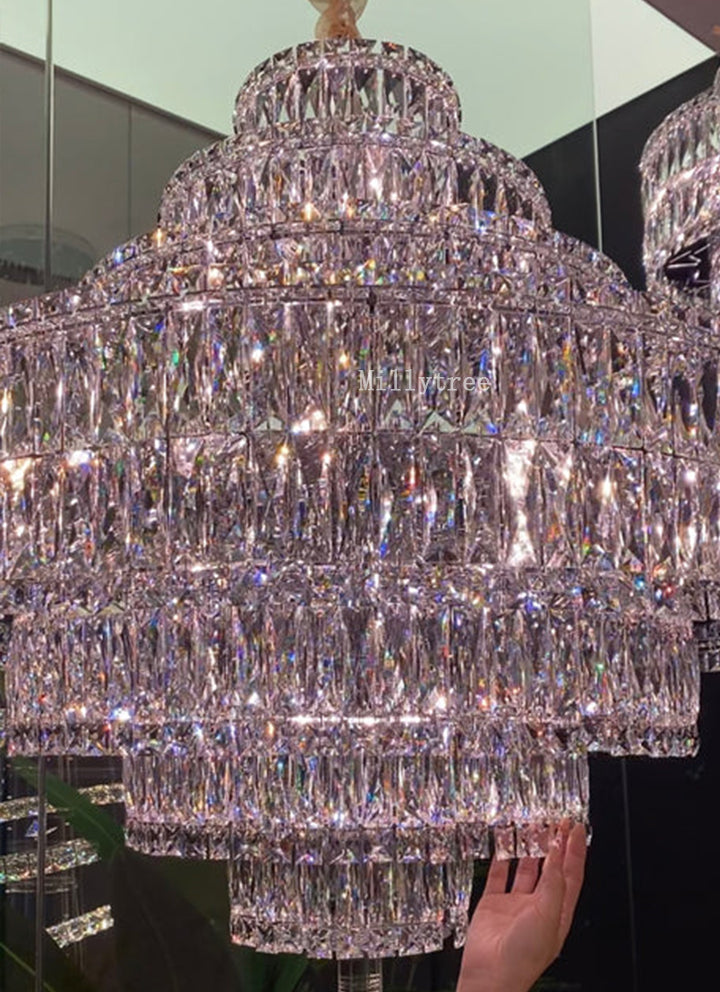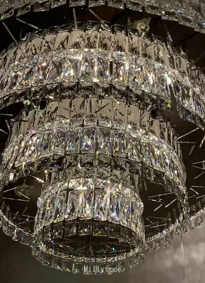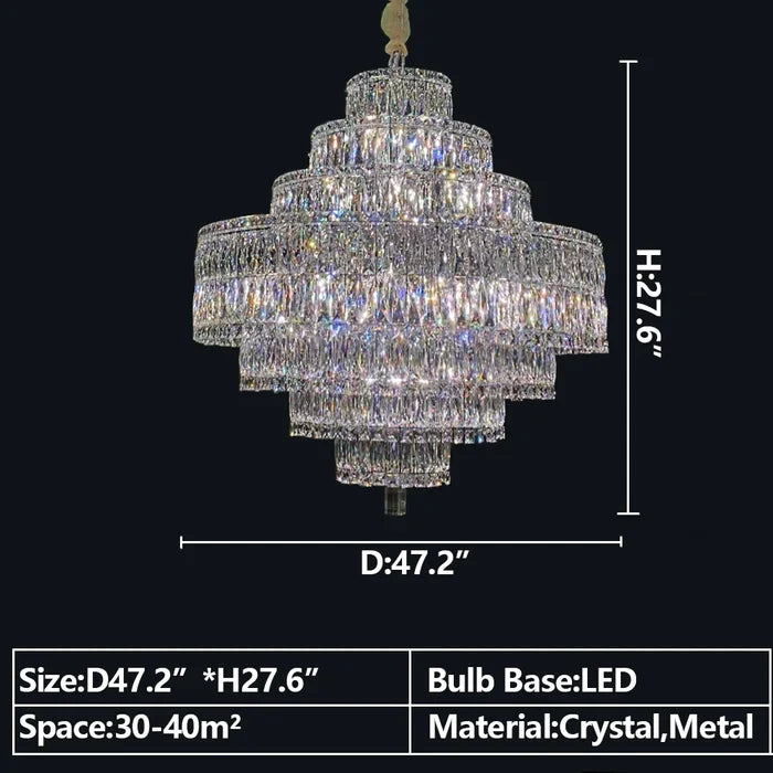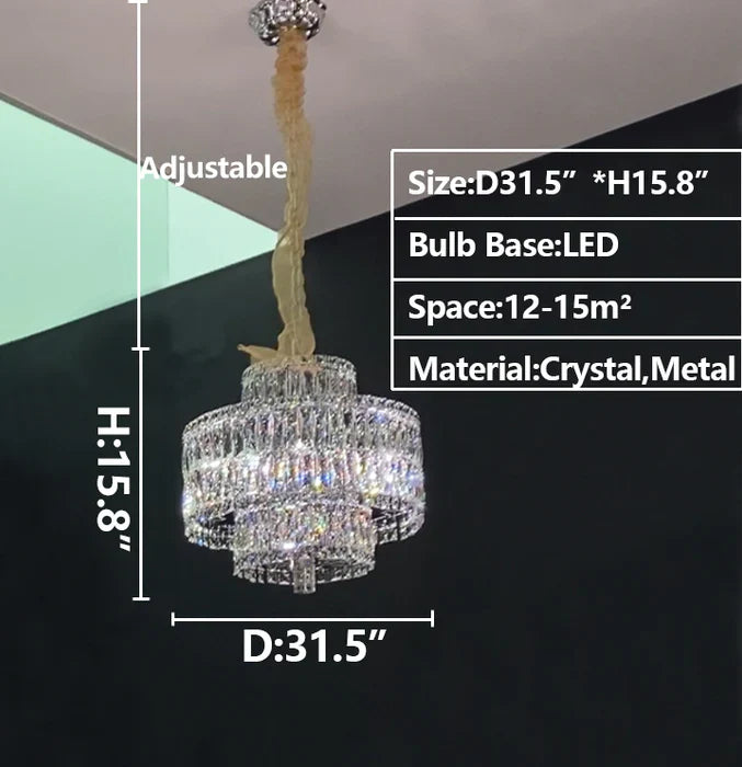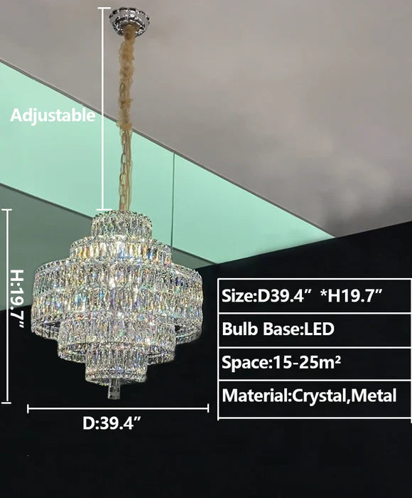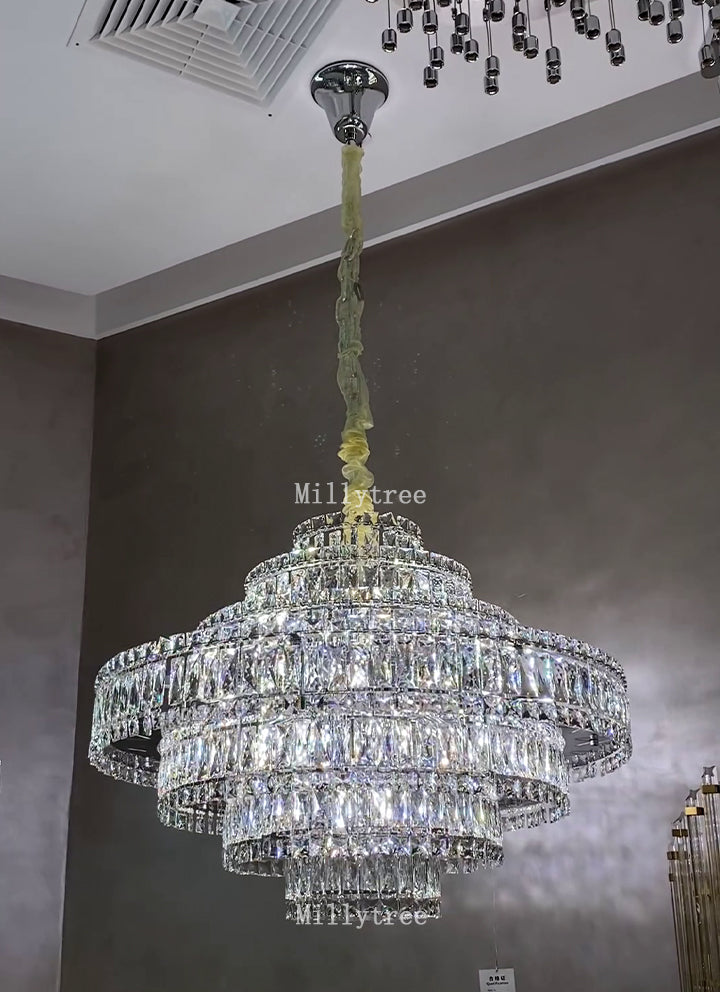 Modern Light Luxury Multi-layers Silver Round Crystal Chandelier for Living Room/Dining Room/Bedroom