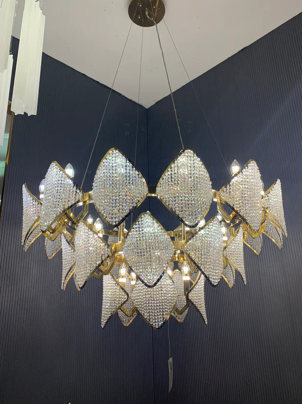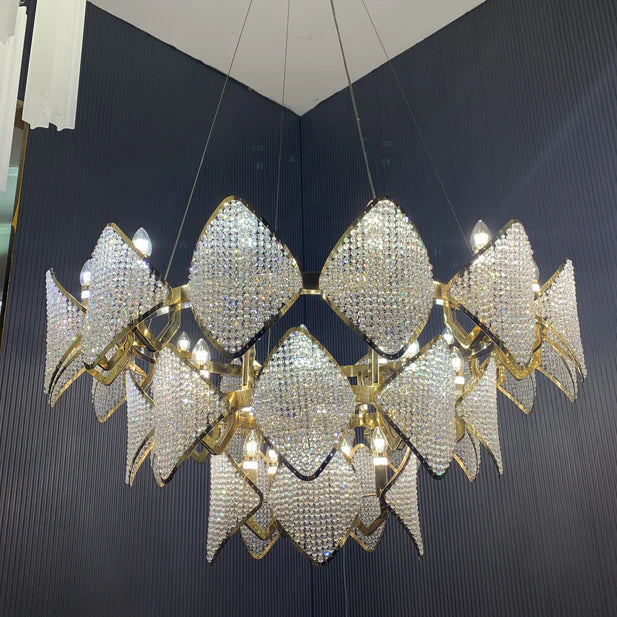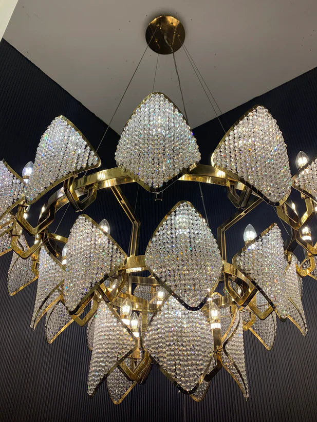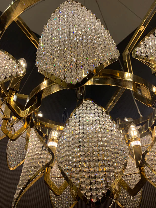 Introduce a touch of modern luxury into your living room with our 3-tier crystal chandelier. The innovative design adds a creative flair to any space while the crystal accents provide a touch of elegance. Elevate your home décor with this eye-catching piece and impress your guests.