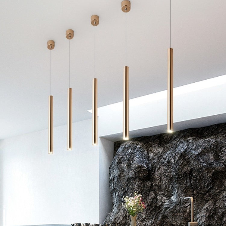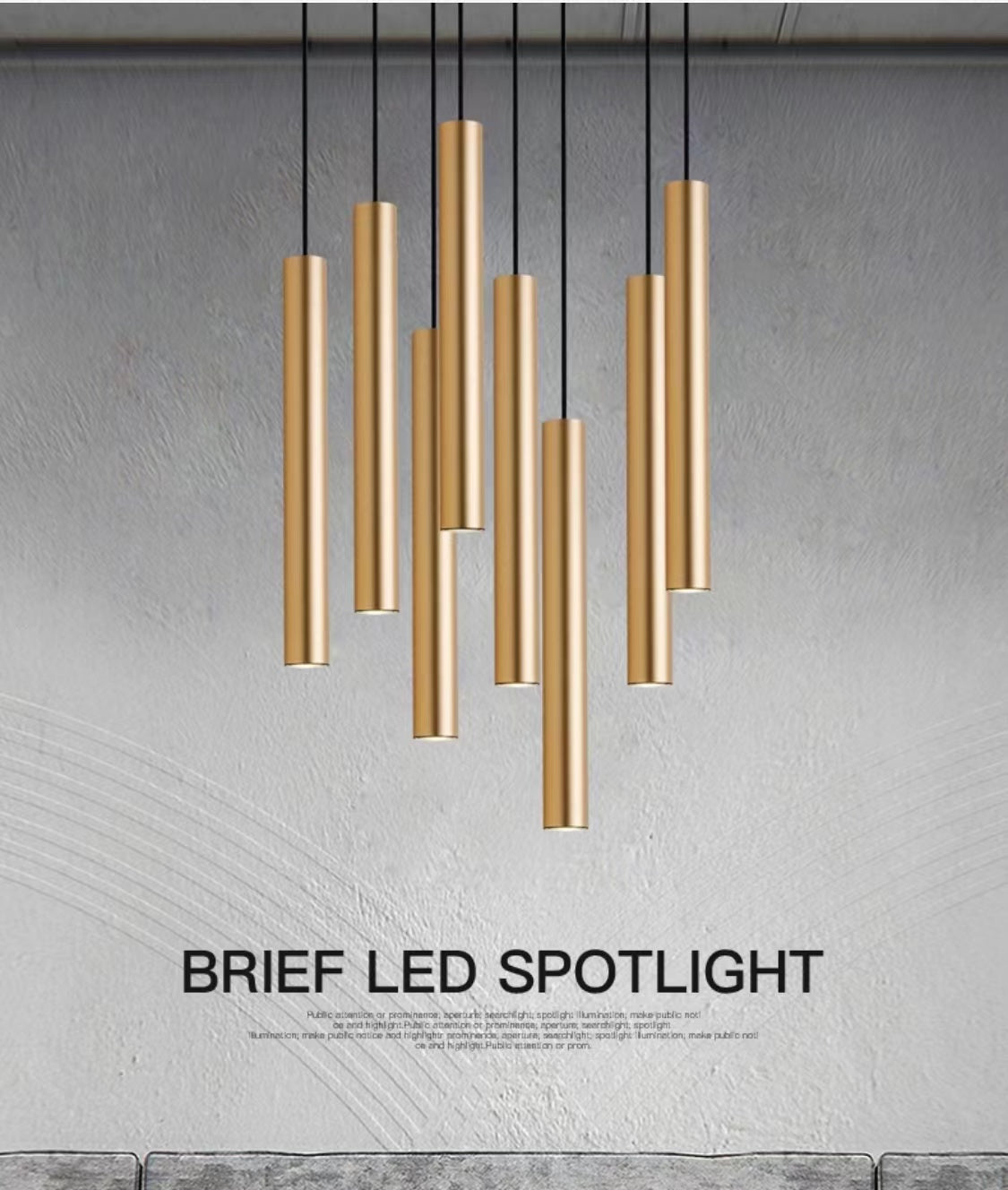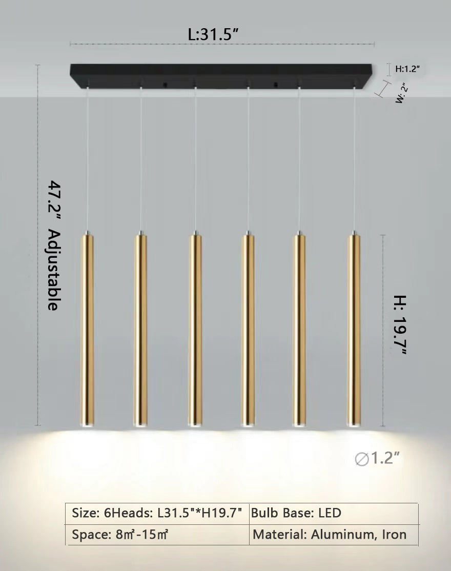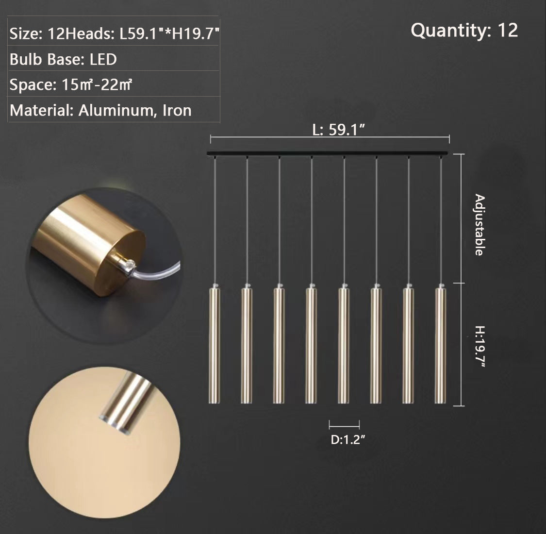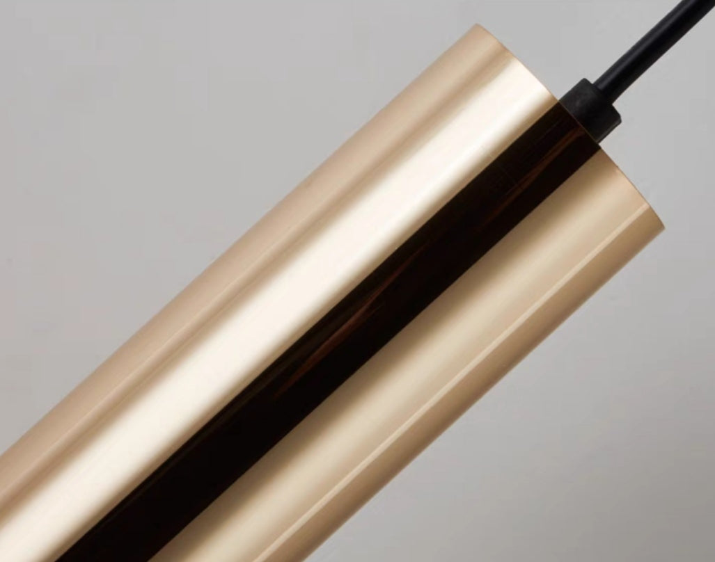 This pendant features different numbers of aluminum tubes with the color of pure gold, well arranged in one linear, that provide a contemporary counterpoint to the new design.  Full of cool Modern sense, making it a visual focal point in your modern home. Varying amounts of tubes for free combination, meeting different functional requirements. Perfect for dining table, kitchen island, water bar or commercial areas, including bars, cafes, restaurants, etc.