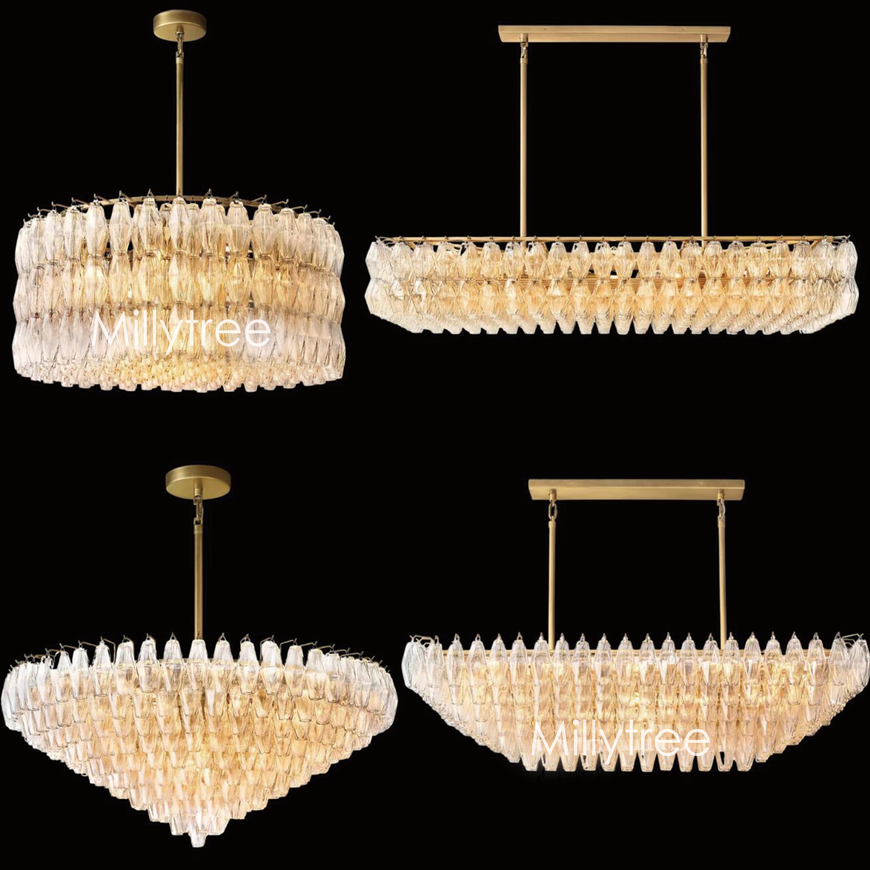 Modern Round/Rectangular Glass Chandelier Set for Low-ceiling