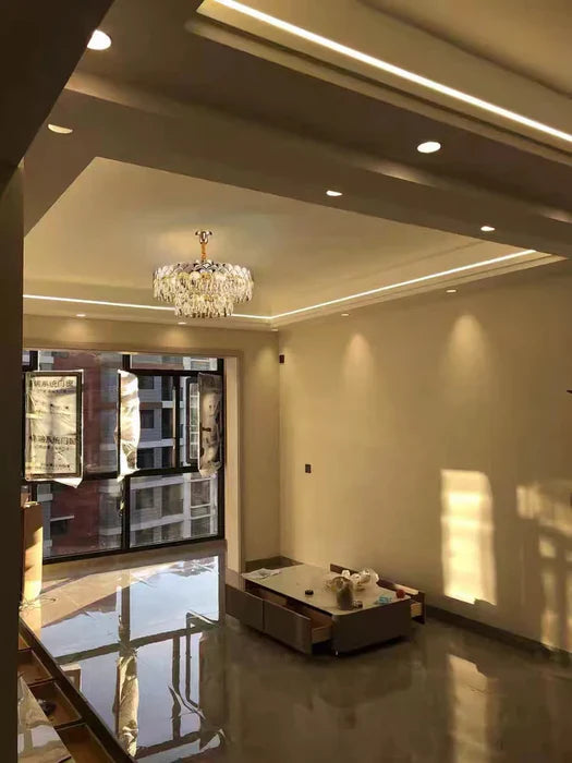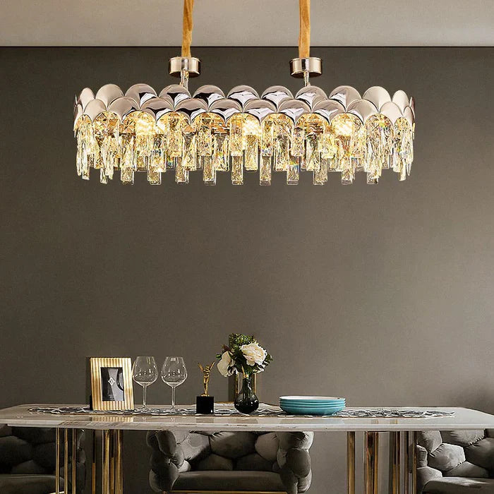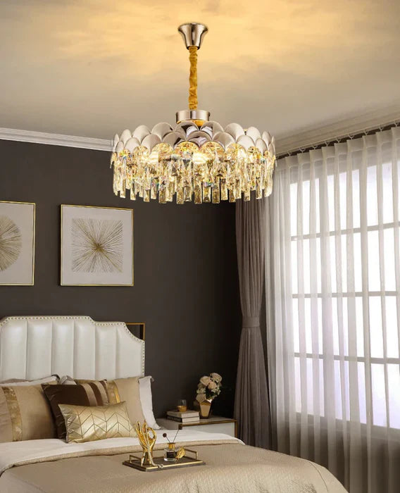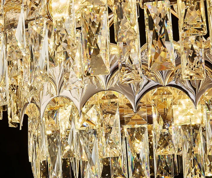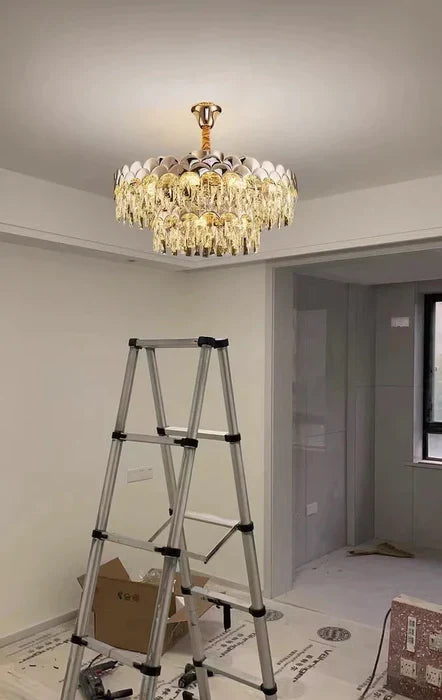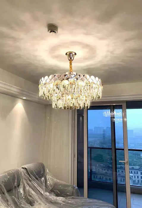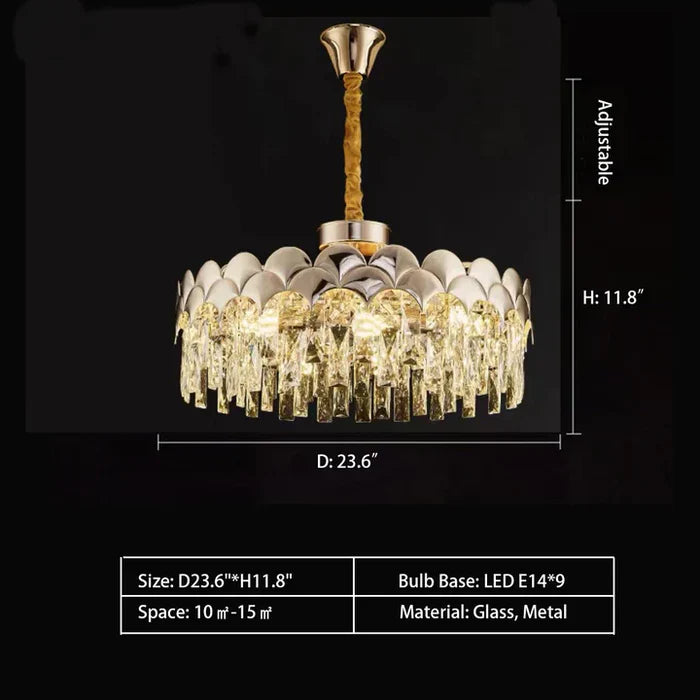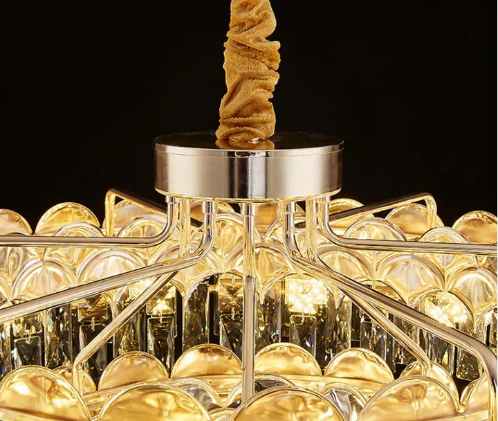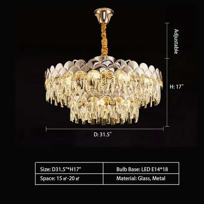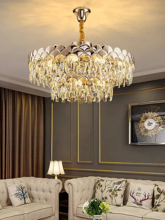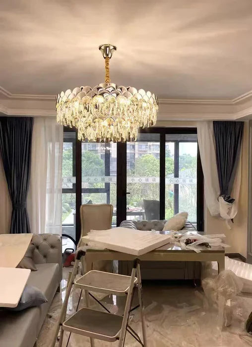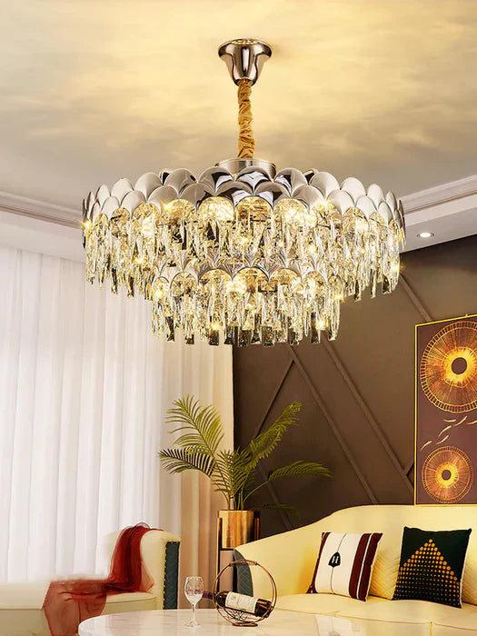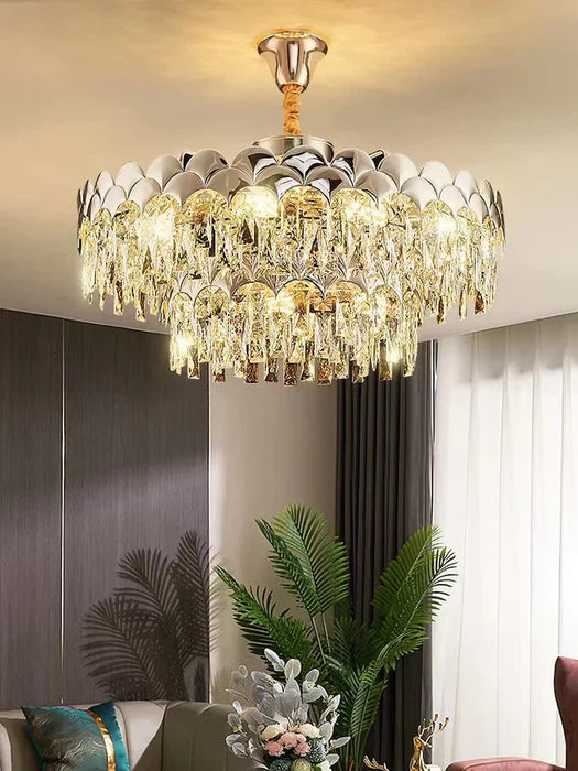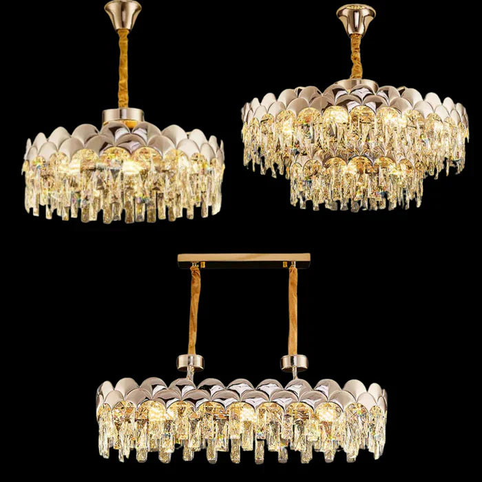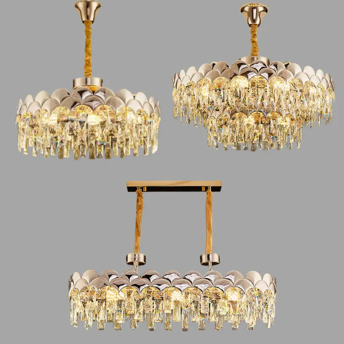 Modern Tiered Fish Scale Round/Rectangle Crystal Pendant Chandelier Suit for Low-ceiling