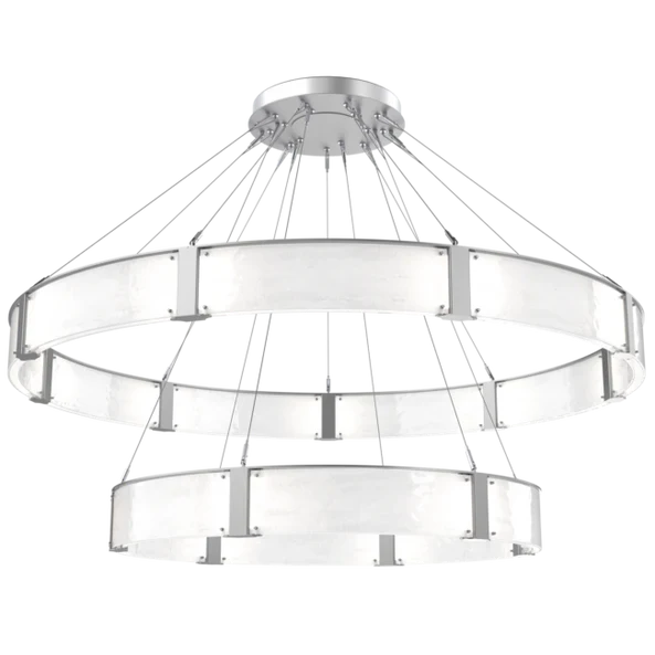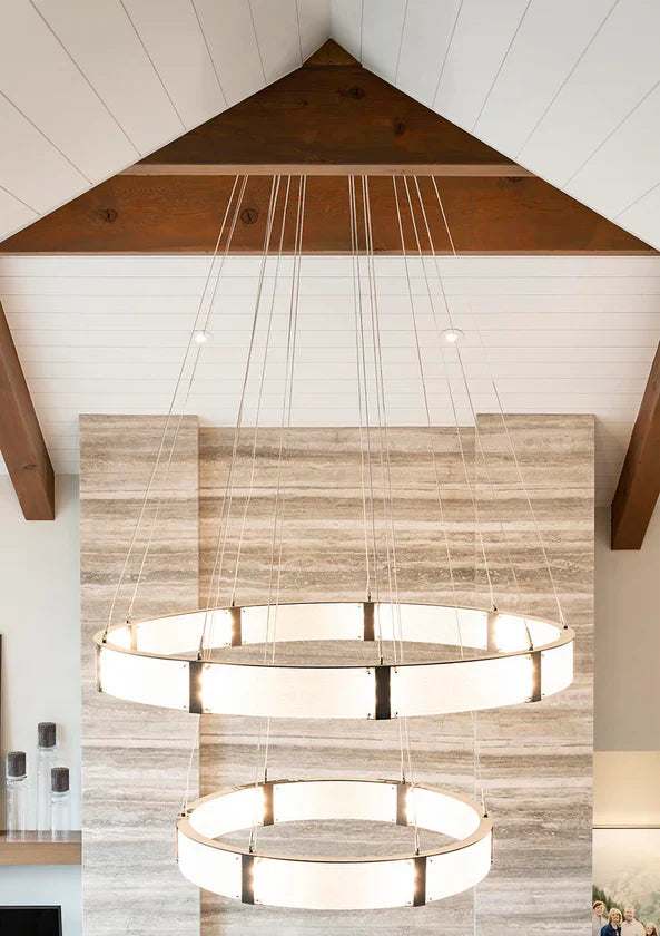 Introducing the Modern Two-Tier Glass Ring Chandelier, a minimalist and contemporary addition to any space. Featuring a sleek design, this chandelier brings a touch of elegance and modernity to your decor. With its simple yet sophisticated style, it is sure to make a statement in any room. Elevate your space with this stunning lighting fixture.