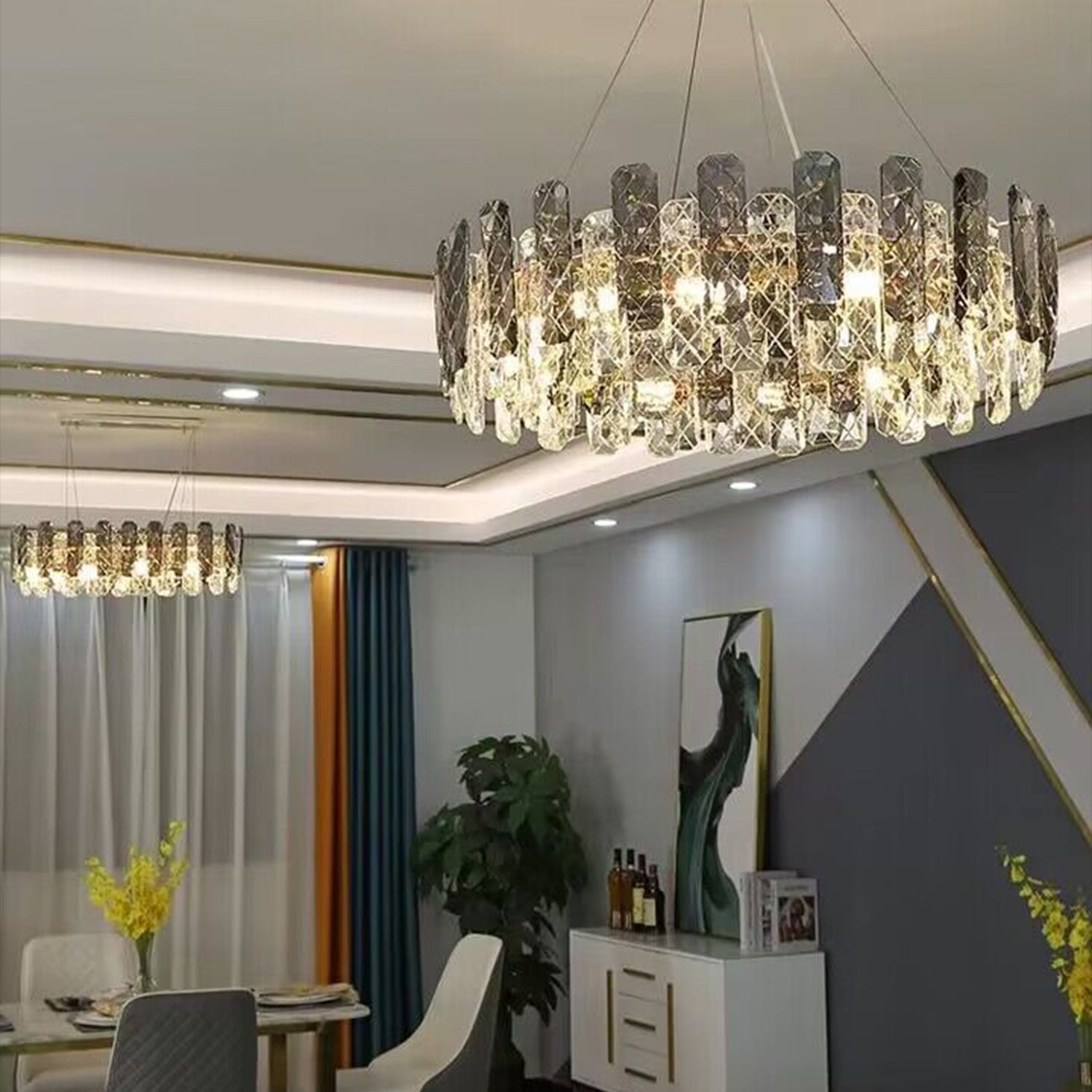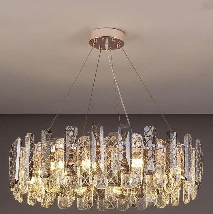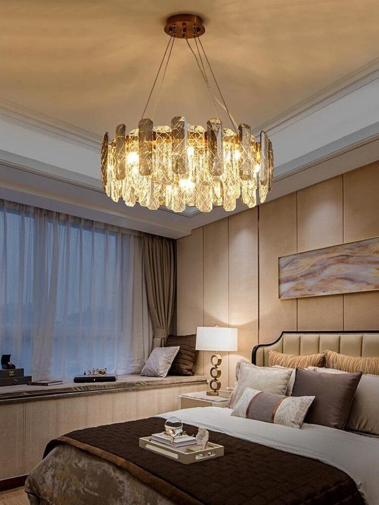 This round home set crystal ceiling light fixture is designed with superior quality and hand-picked K9 crystals which make the room extremely glittering and shinning. This chandelier is an archetypal symbol of elegance. With its ornate French detailing and a cool understated glow, it couldn’t be more regal if it had a crown on its head. It would make an entrancing addition to any home – and, frankly, it should be seen by all. Such a minimalistic but stylish chandelier lighting fixture is an ideal lighting choice for your space while a great decoration element to your house, adding more elegance and charm to your home.
