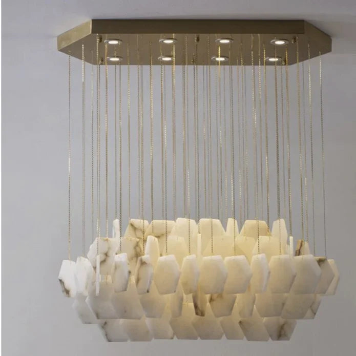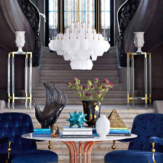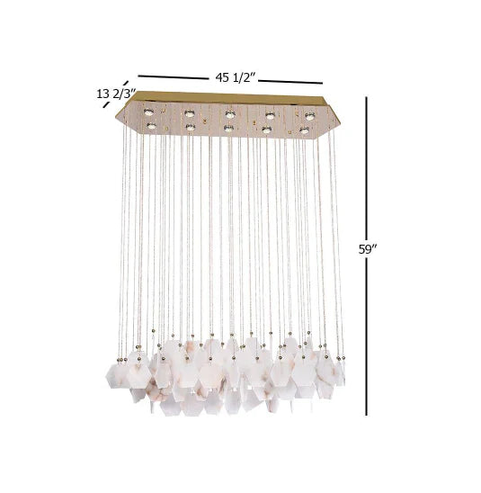 This chandelier adds modern sophistication to any room with its Nordic style and light marble design. It is perfect for staircases, living rooms, and dining rooms, providing unique style and luxurious elegance without sacrificing lighting quality.