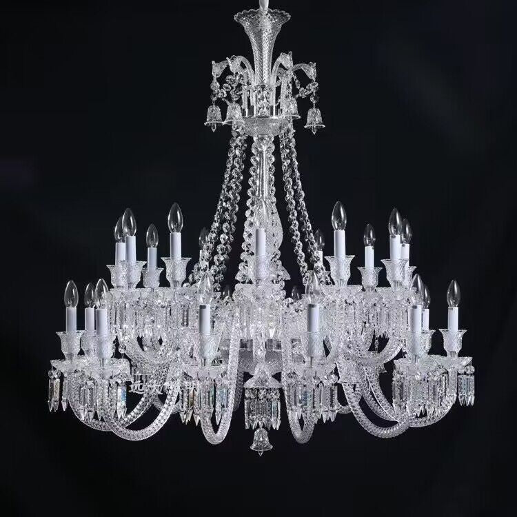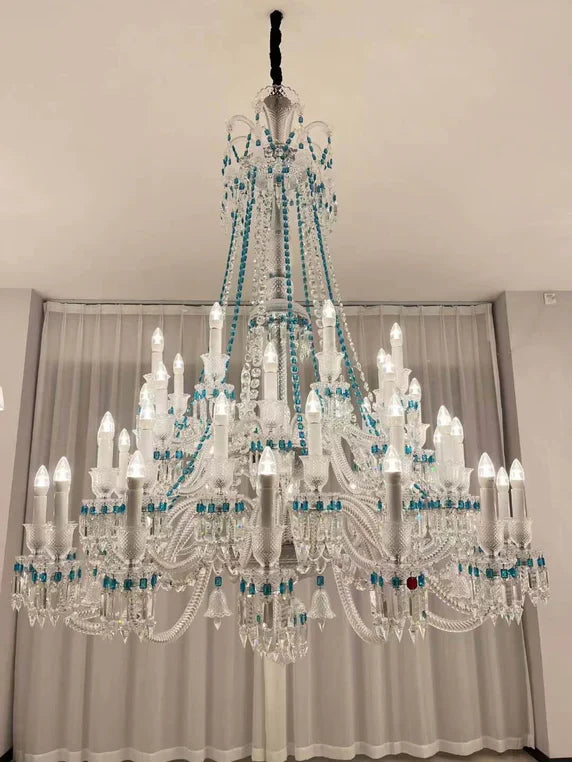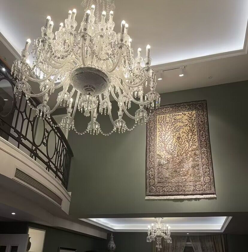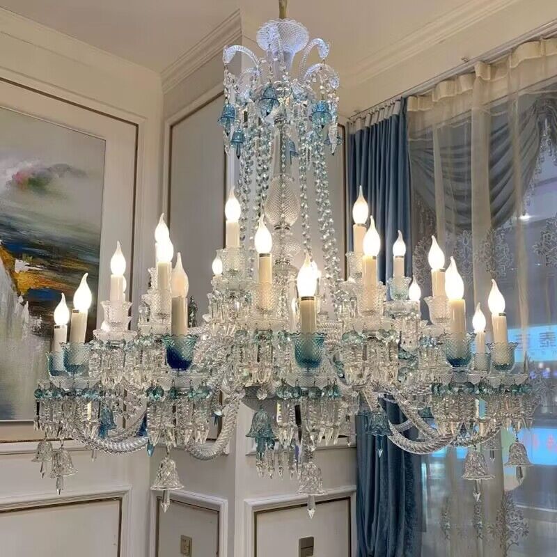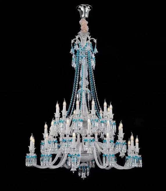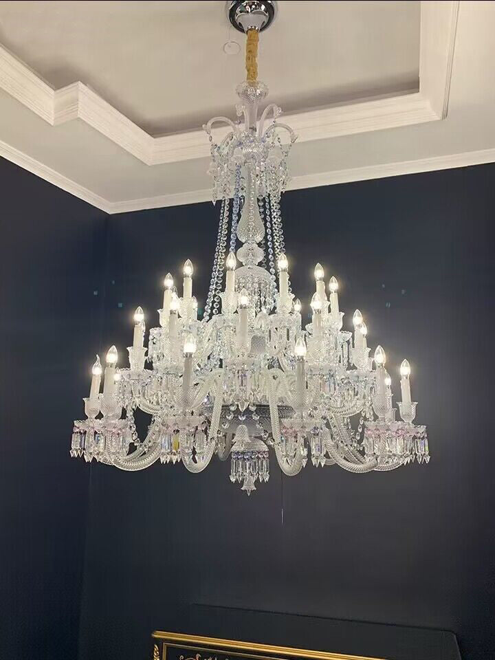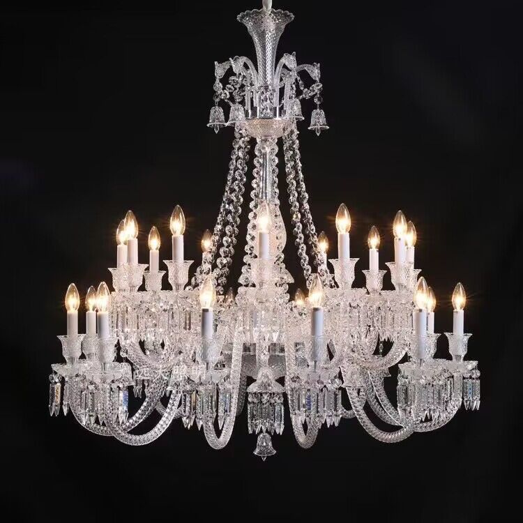 This oversized multi-layer European candle crystal chandelier uses artistic iron and high-quality two-sided transparent K9 crystal which features stunning details and a very high level of craftmanship. A true masterpiece for a luxurious, traditional interior. Its dazzling, attractive, simple post-modern design lets you enhance the taste of life, in the bedroom, dining room, lobby, and other occasions, the interpretation of light luxury flavor and aesthetics of light brings you the ultimate experience.