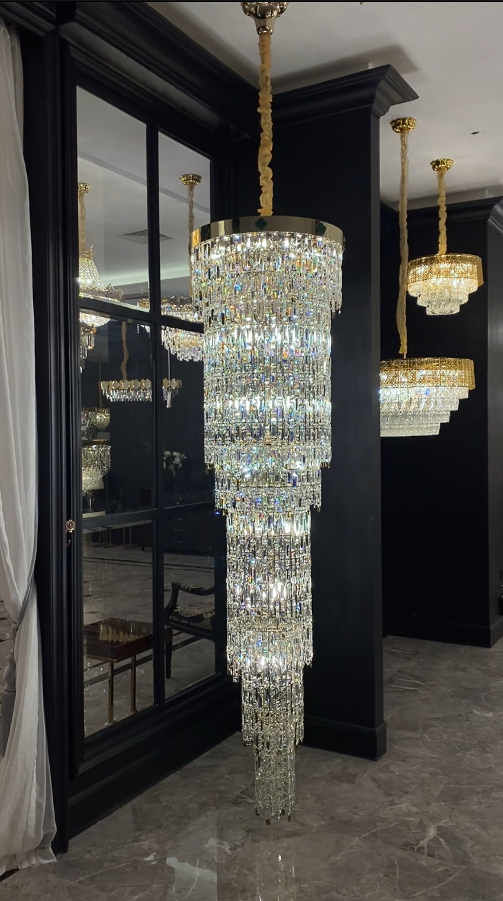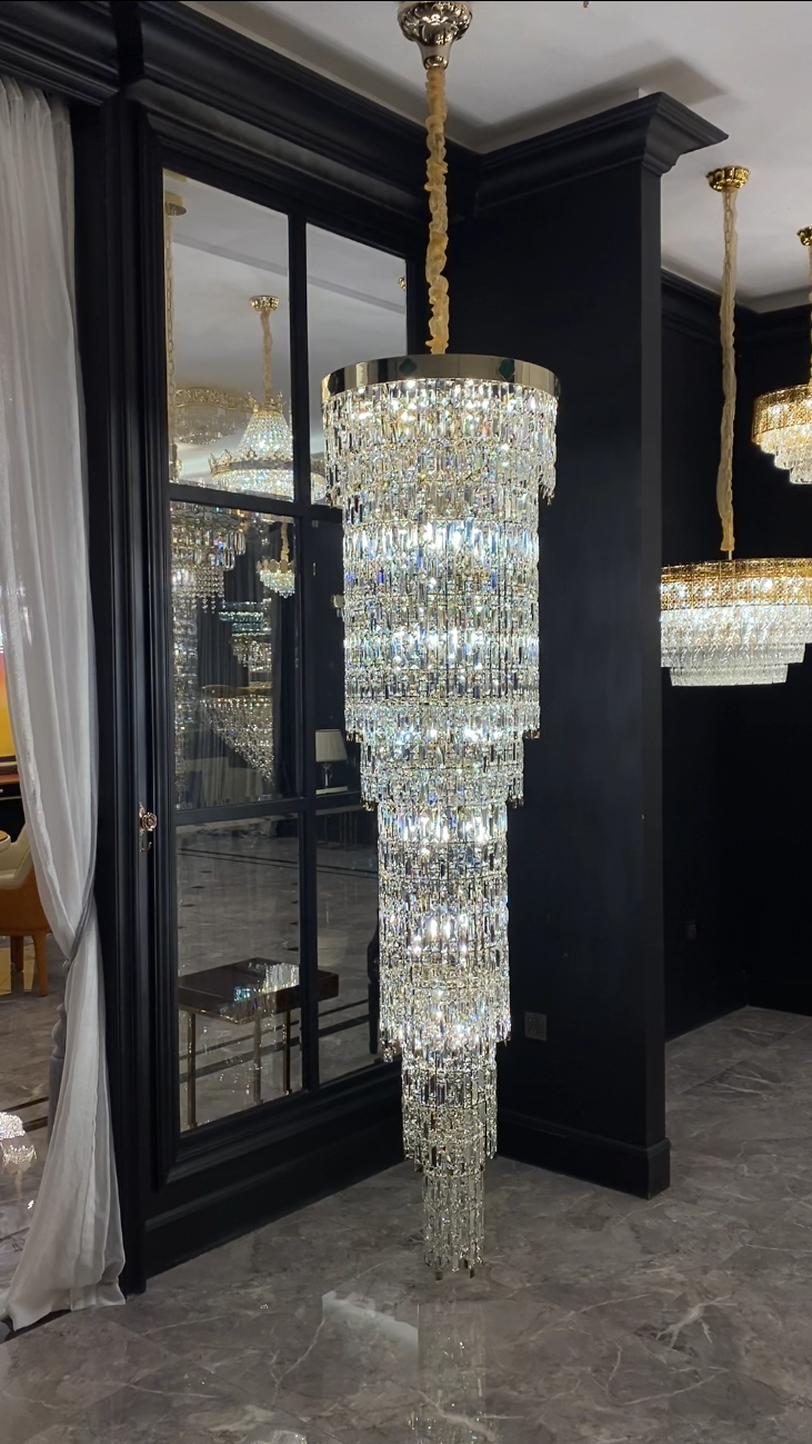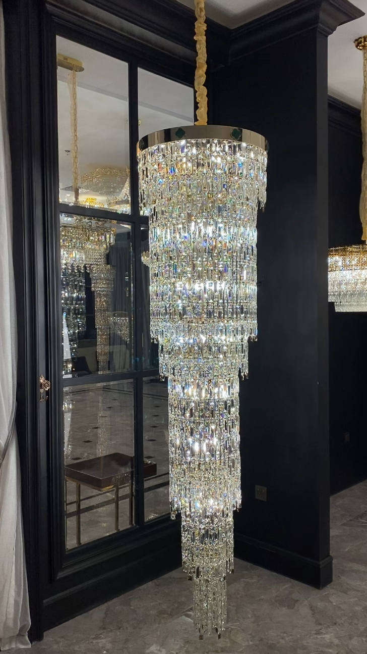 Oversized Multi-layers Tassel Crystal Long Chandelier for High-ceiling