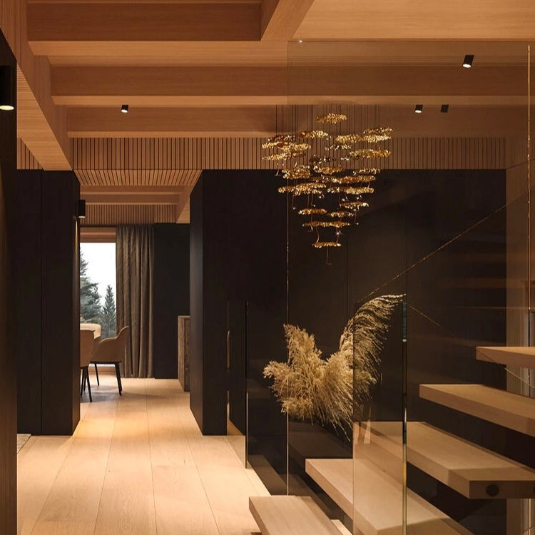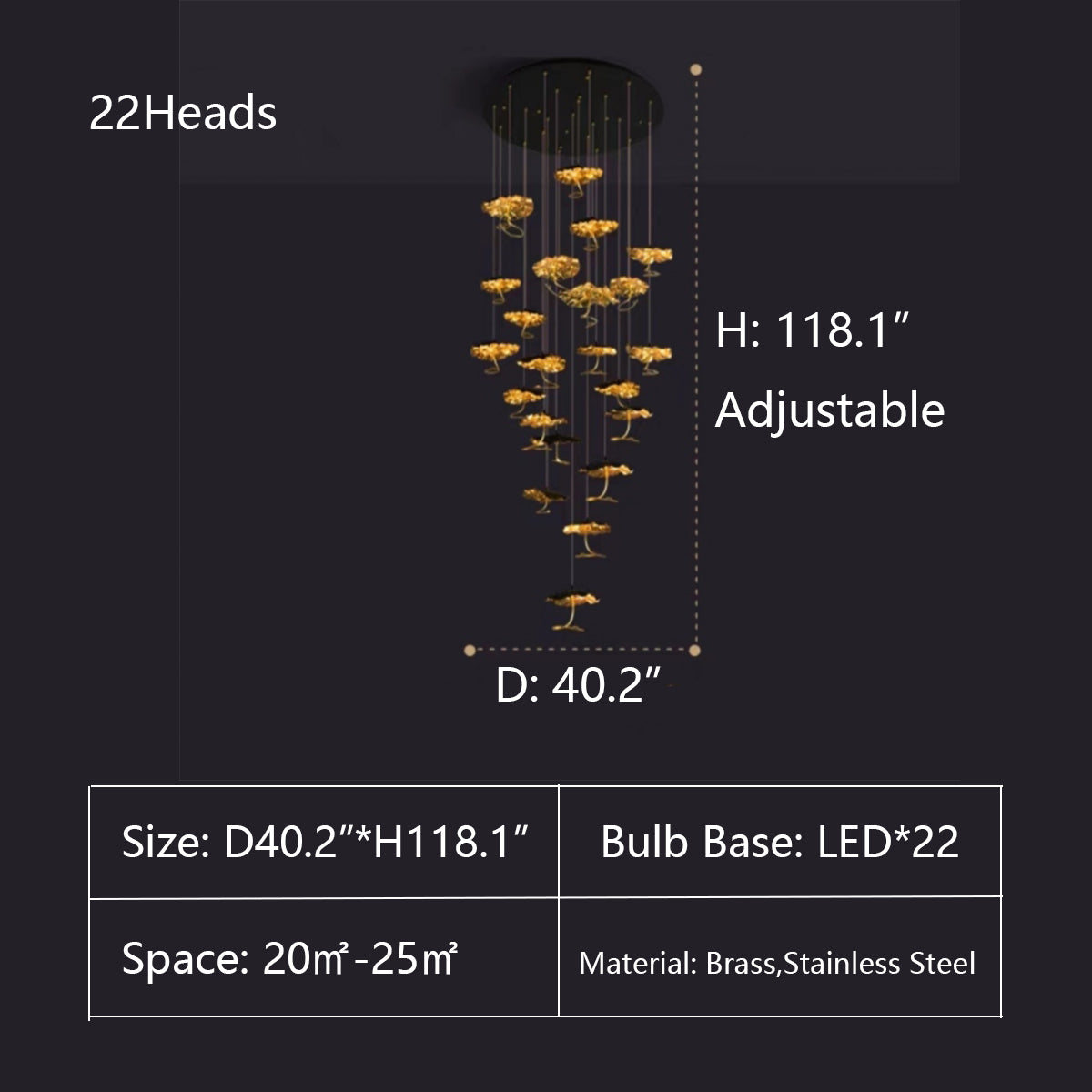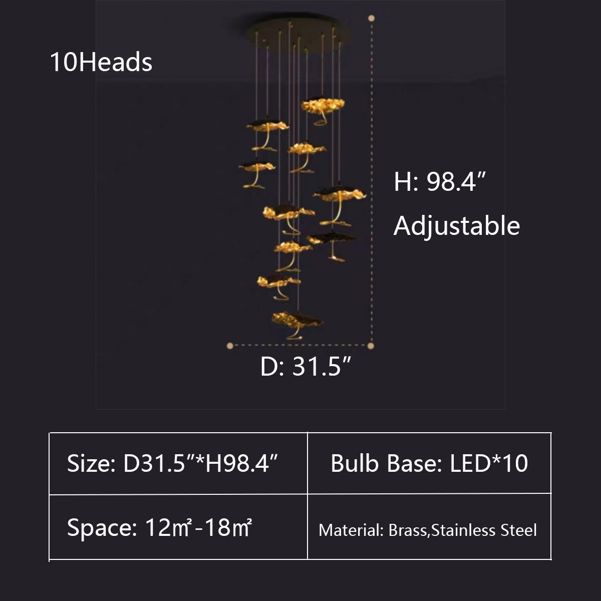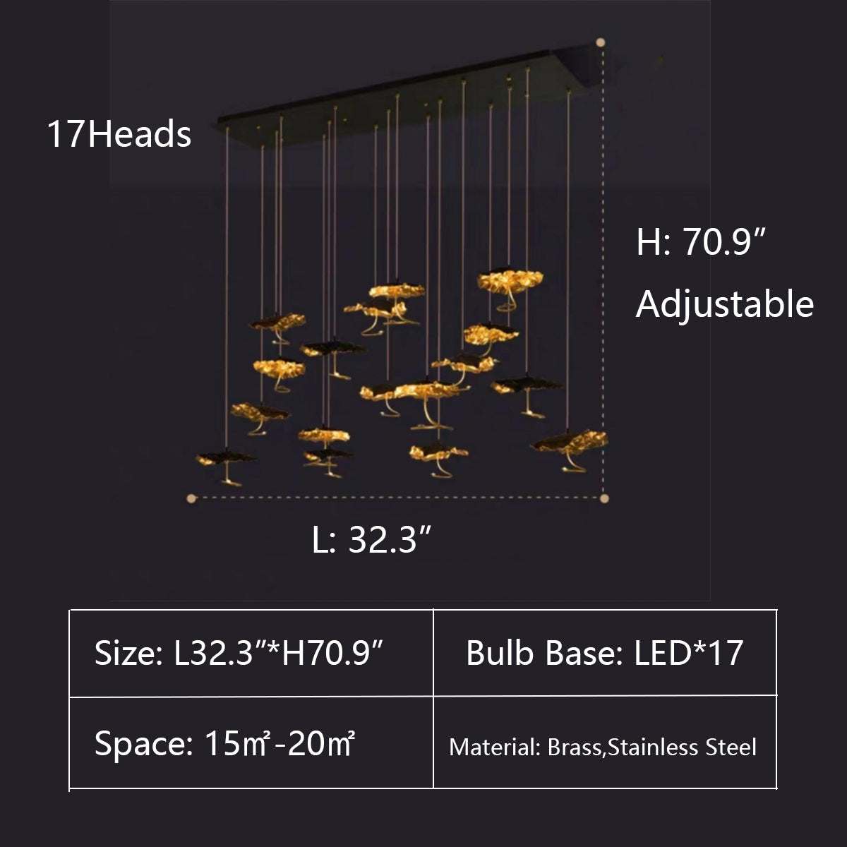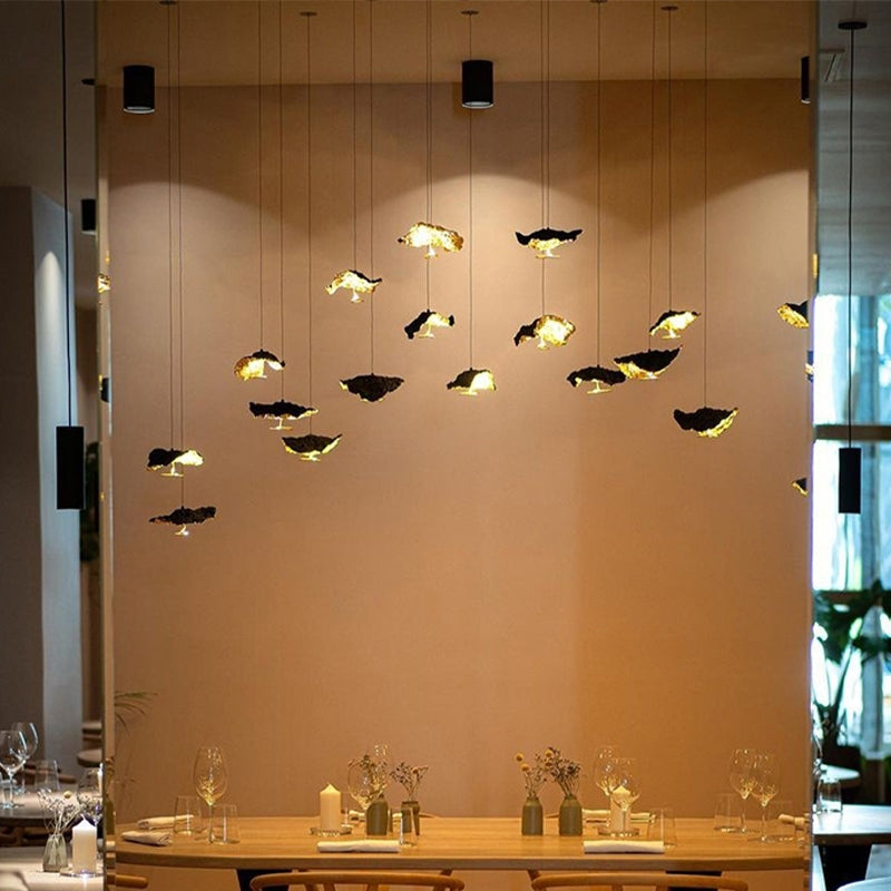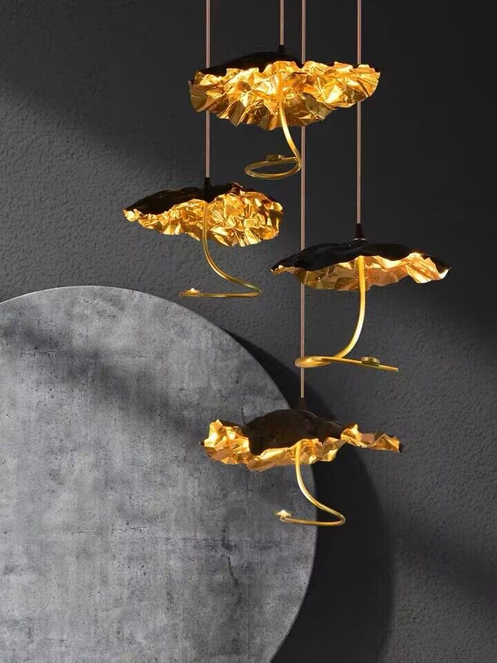 This series of chandeliers features an artistic and adventurous design based on a cluster of lotus leaves made of brass. Whether the light is turned on or not, it is absolutely stunning as a home decor. There are different types to choose from:  the round top-sucking disk model is used for staircases or living rooms on high floors; and the rectangular top-sucking disk can be used to decorate the dining room or set at the bedside for night lighting.