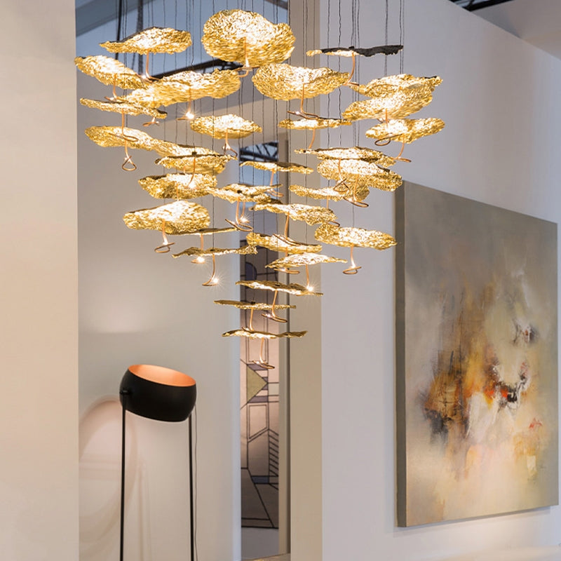 Post-Modern Art Lotus Leaf-Shaped Cluster Chandelier for High-Ceiling Space