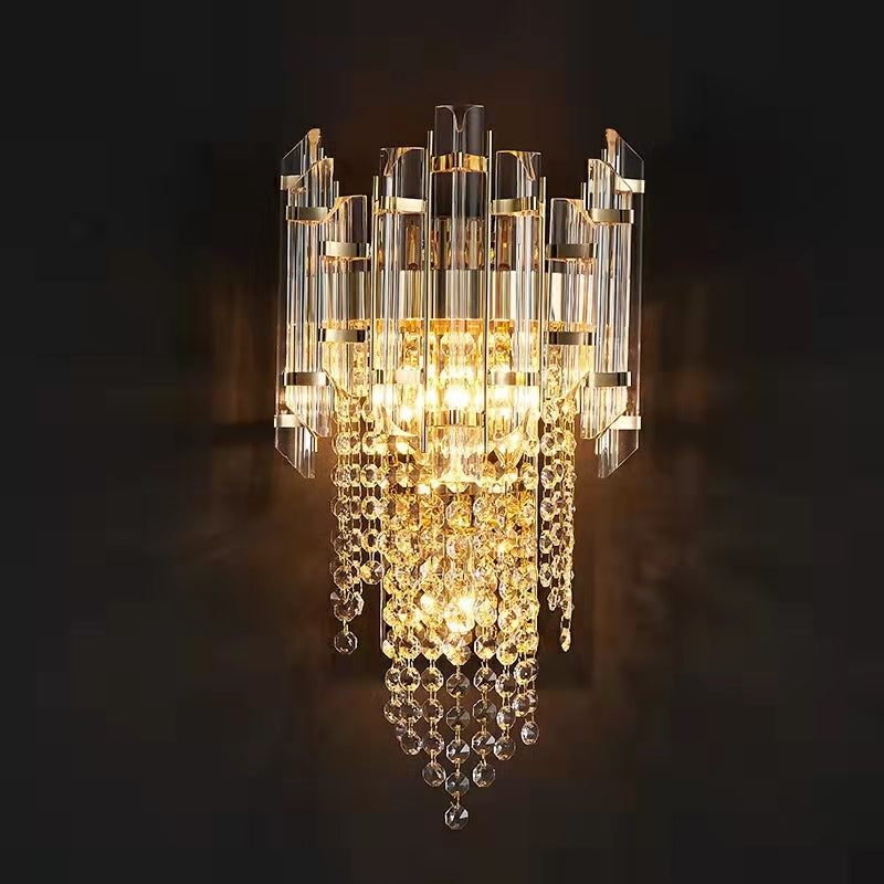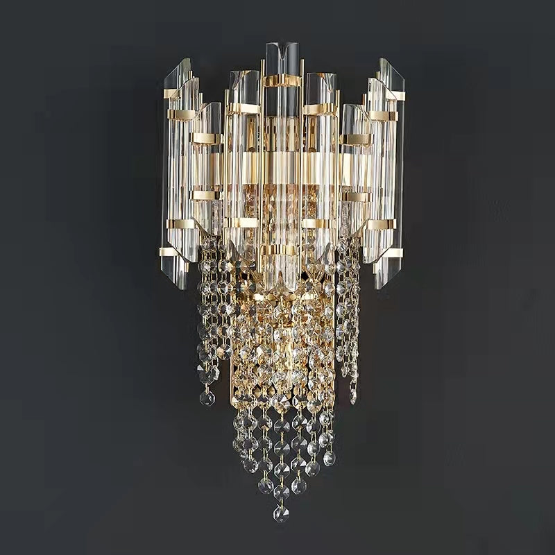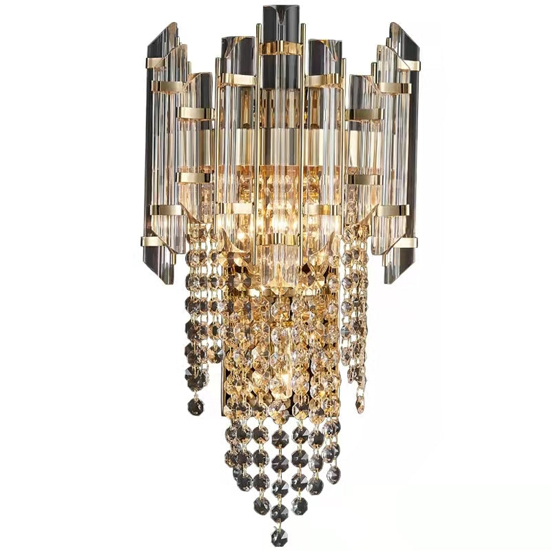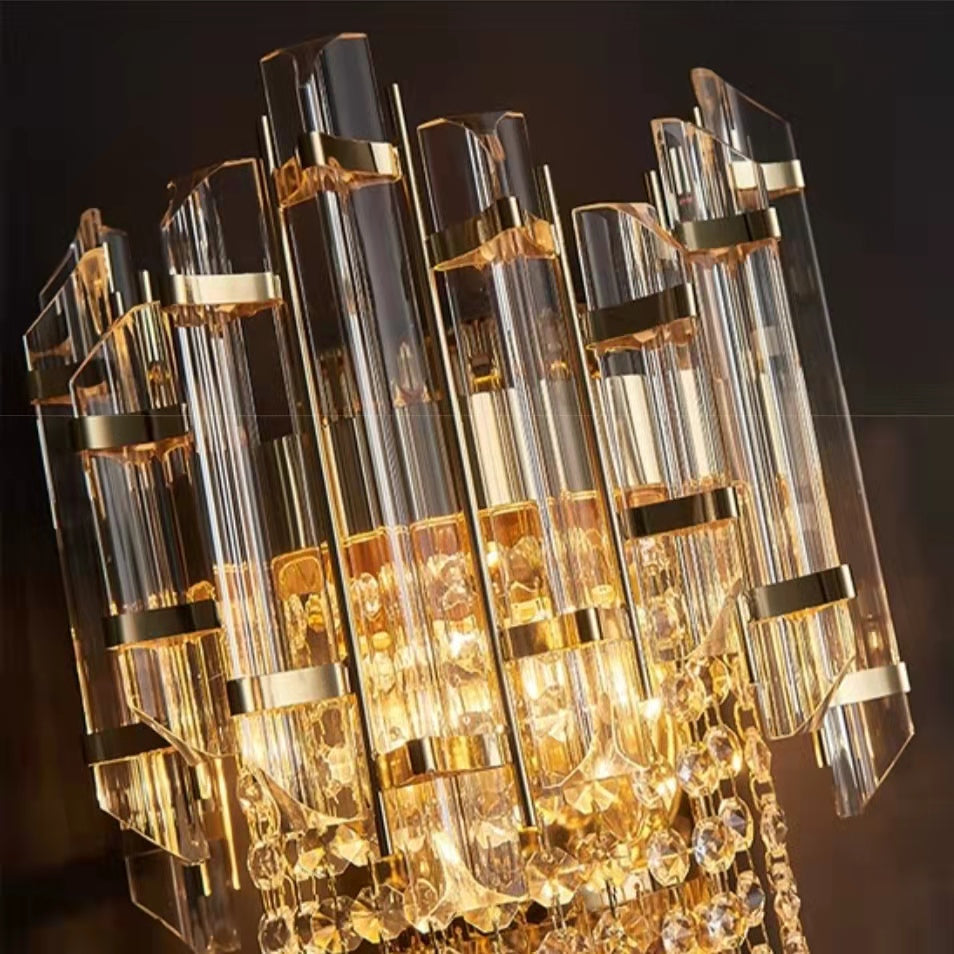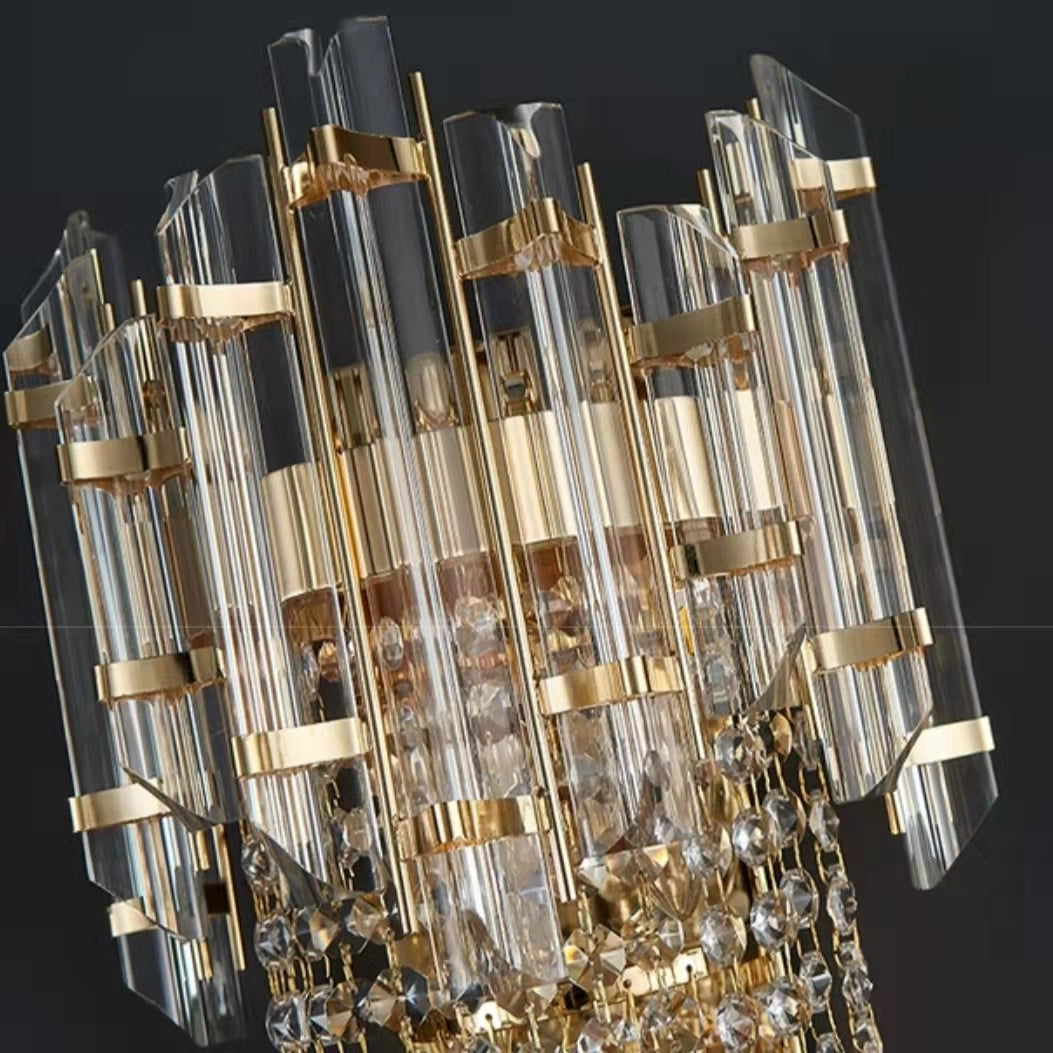 The whole light body is made of crystal and stainless metal. It is designed into a concise and modern style.