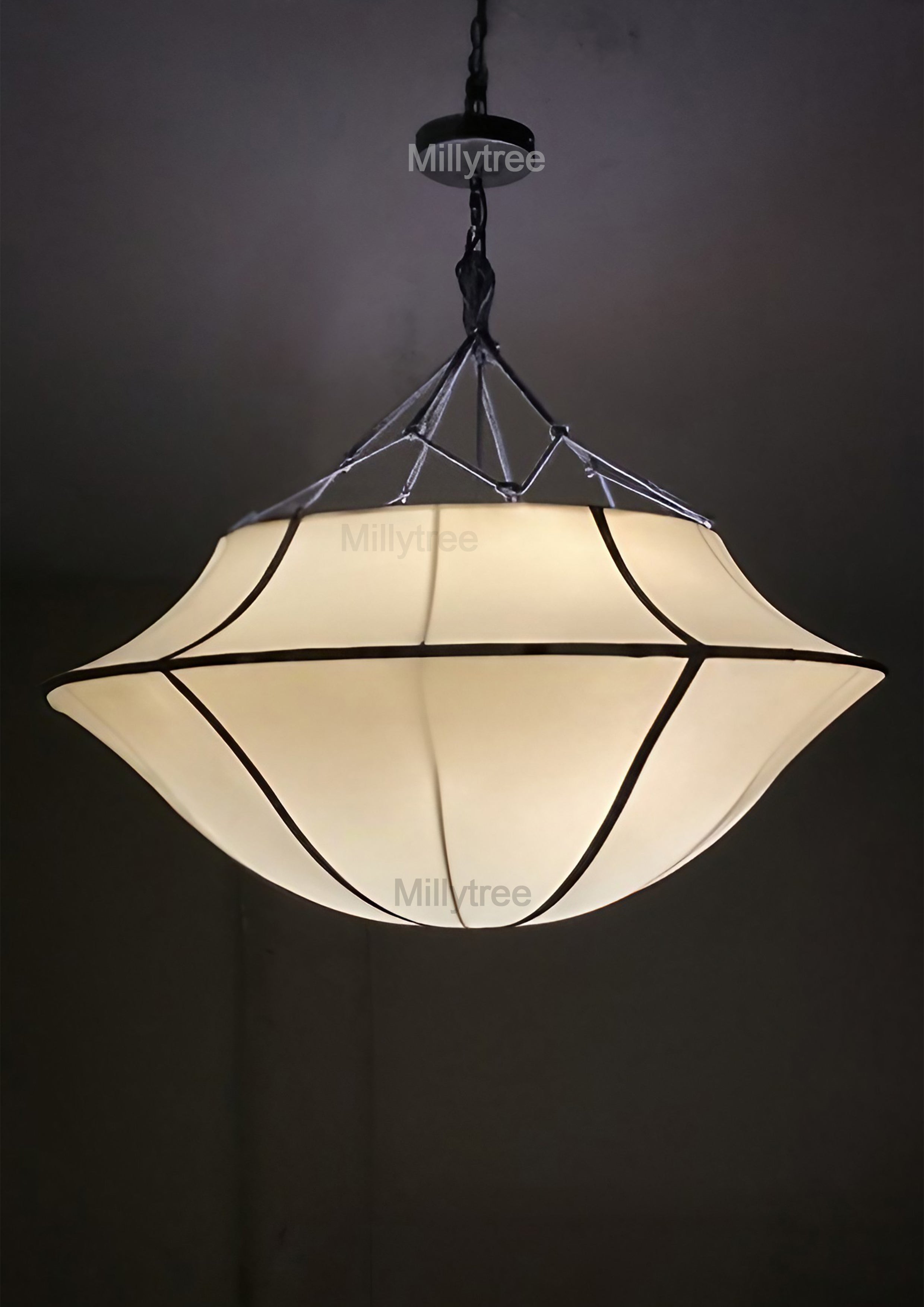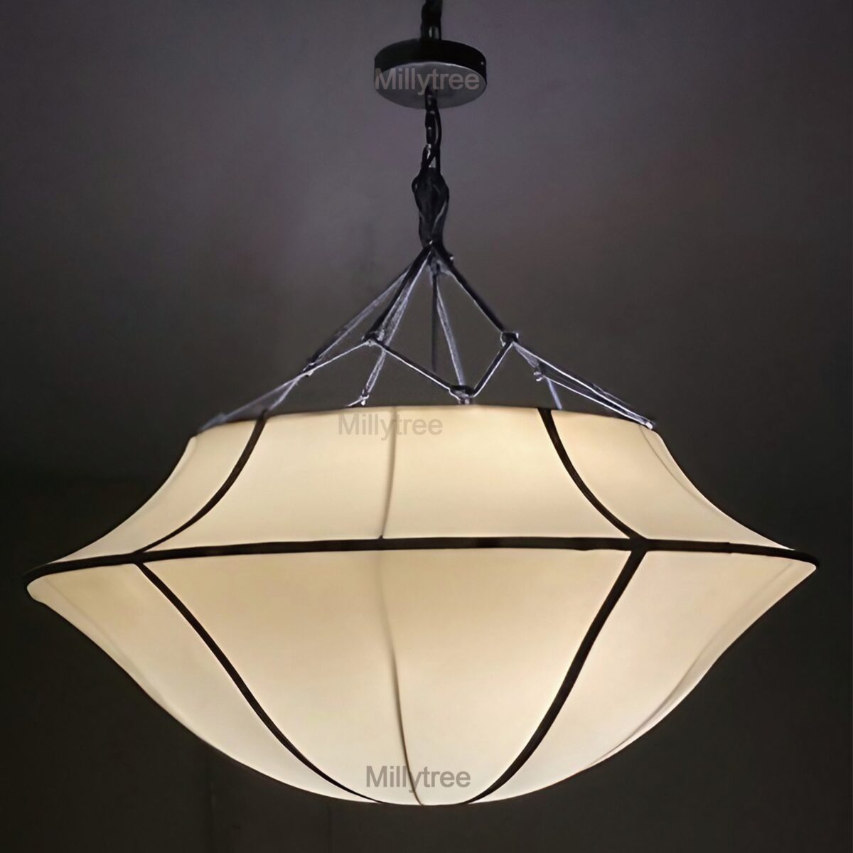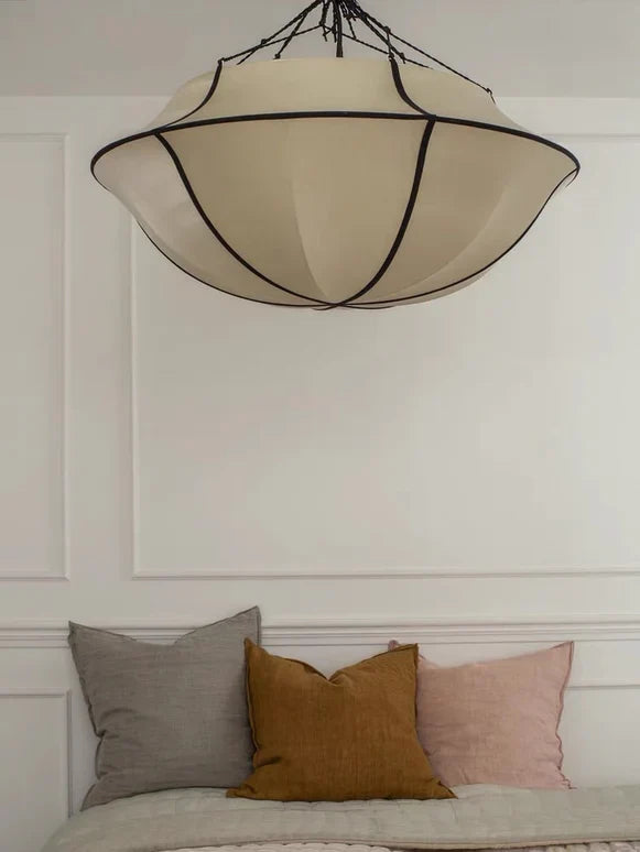 Vintage French Style Cream White Silk Umbrella Chandelier