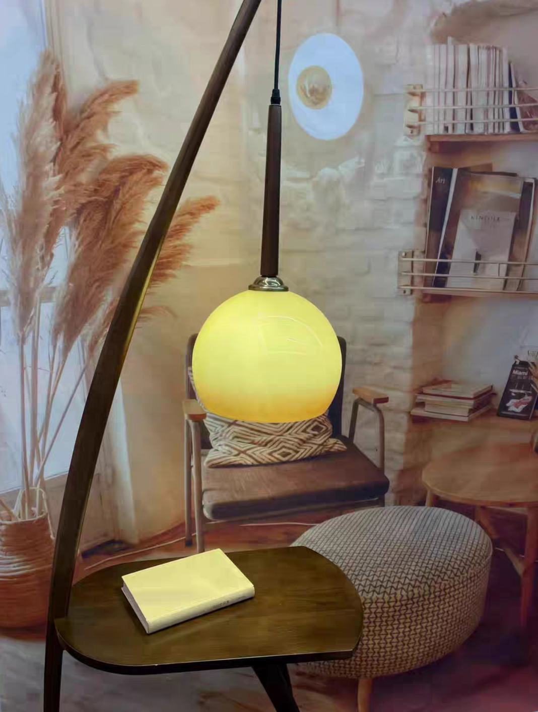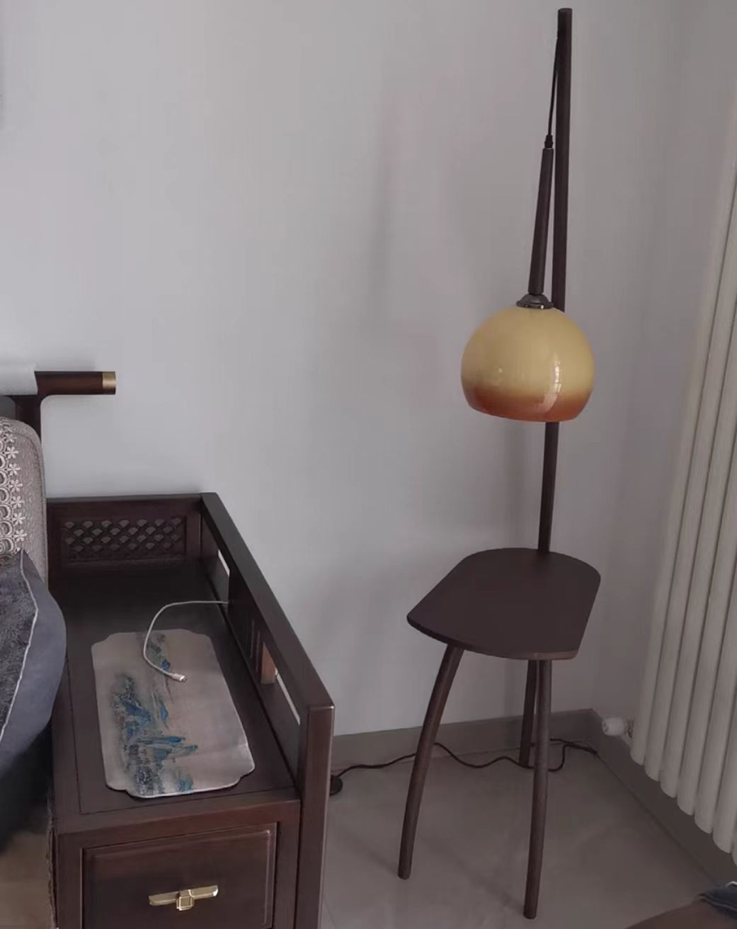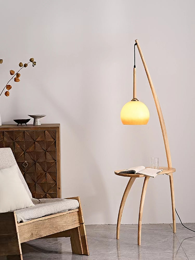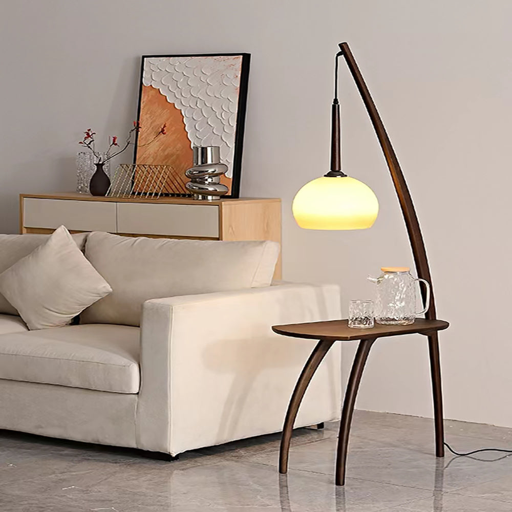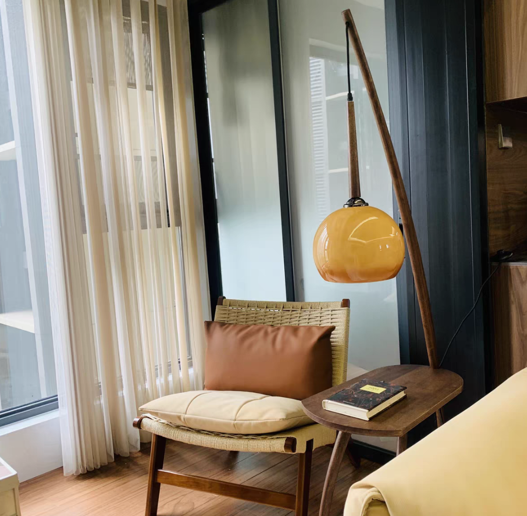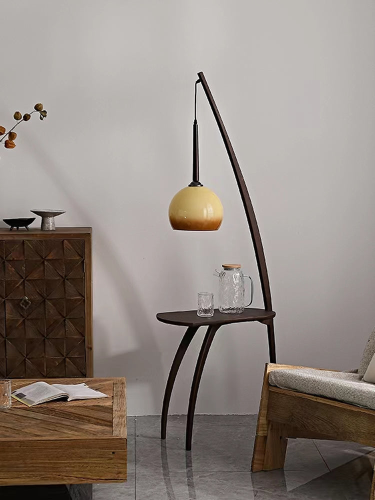 Embracing nostalgic aesthetic conceptions with form and color, this floor lamp with small table is a functional floor lamp with a glass shade that is also cantilevered to illuminate the surface of the table directly. There is also a surprisingly useful side table that is ideal for snacks, drinks and reading material. It can be perfectly placed in your bedroom, study, living room, etc.